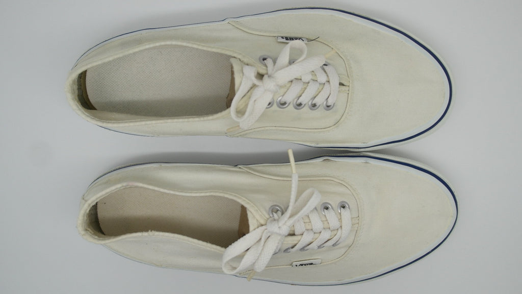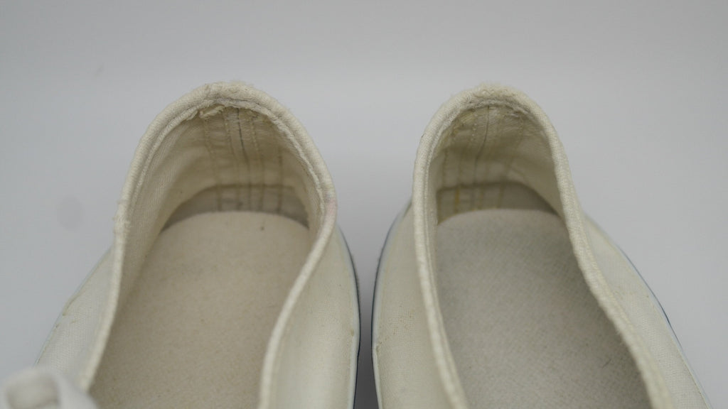 good used condition. these were machine washed with softening of canvas & peeling of the inner toe reinforcement & eyelet paint. the inner heel counter has been removed & as such the heel is less reinforced. the footbed was completely removed, with decent skill, & a replacement insole is in place however not glued down. still plenty life left. size is not visible however im confident they are US10.5 if not US10. check measures
