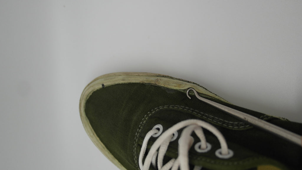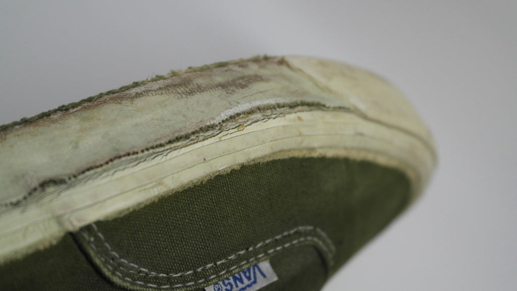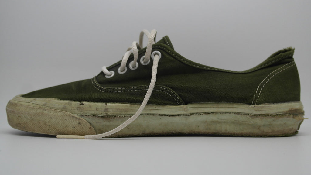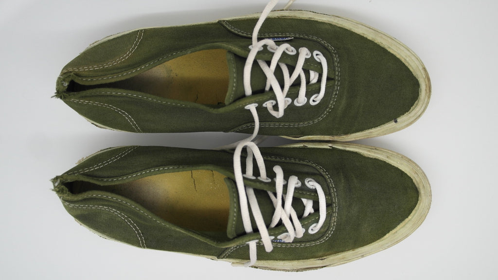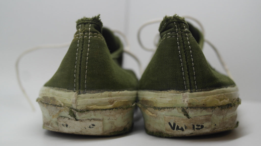 im 99% sure these were originally white canvas & underwent diy mashine wash dye job. condition is decent but these have been negelected. rubber remains soft & flexi however they sufferred significant crush injuries with resulting stress cracks below the foxing stripe. there are small areas f shoe-goo repair to the foxing. the footbed was ripped out & will require an innersole. laces are not original. still life left. the size is not visible however appear to be US10.5 if not US11. check measures!