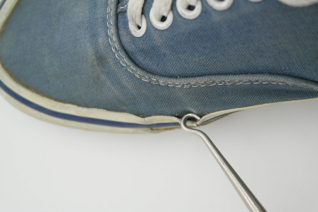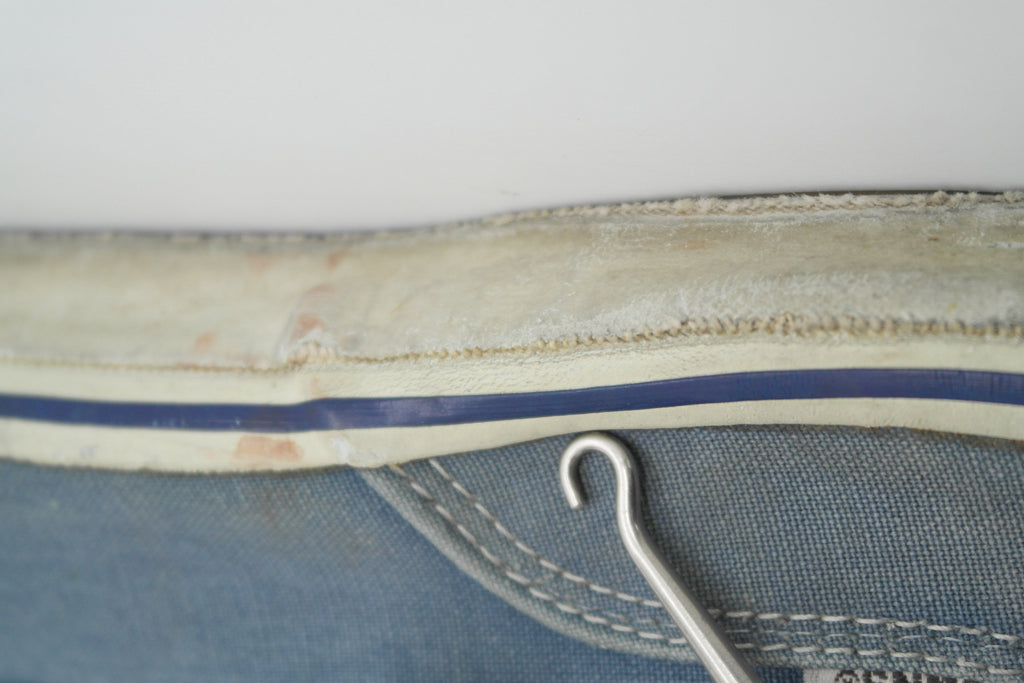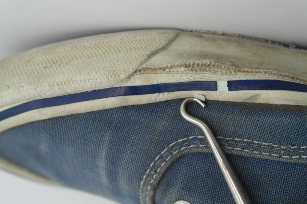 good used condition. rubber is more dry than it is hard & remains mostly soft & flexible. some separation with uppers is present combined with rubber flaking & foxing stripe cracking. this may continue to progress hoever deterioration will be slow. from experience they will hold up to normal wear with minor rubber loss. the friction & waffle are unaffected. otherwise only minor micro-stress-cracking from crush injury & wear to toe cap & internal lining at toes.