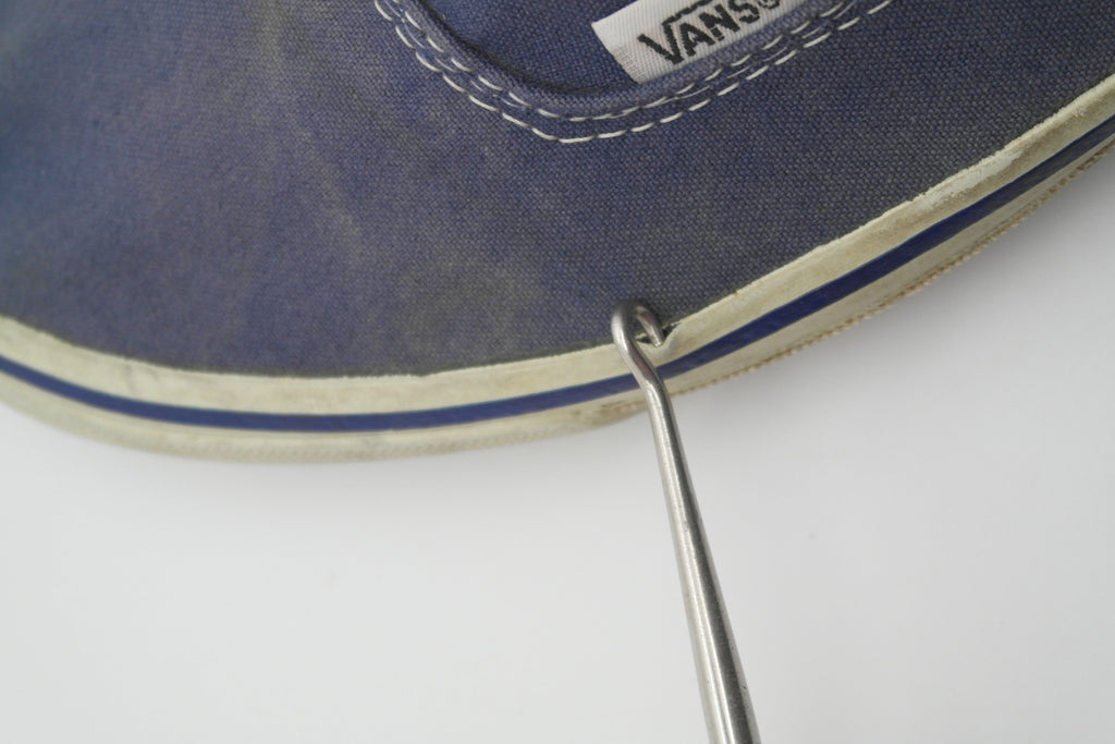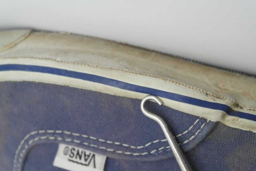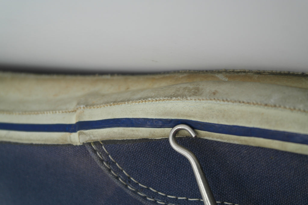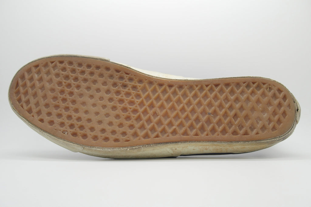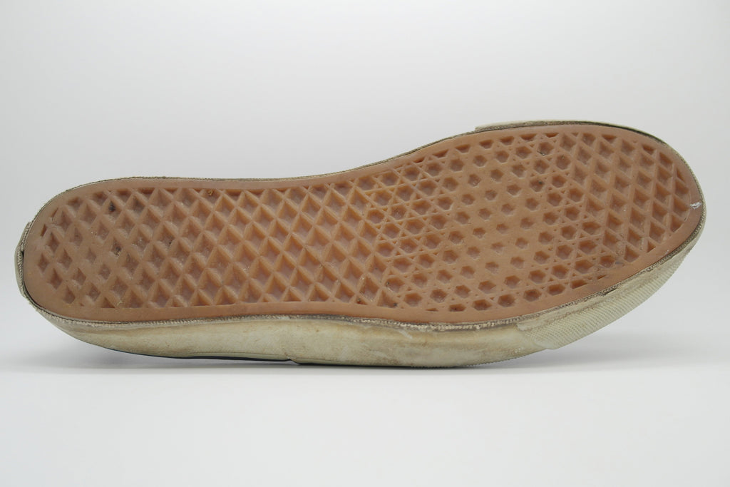 excellent used condition. rubber remains soft & flexible with only minor micro-stress-cracking from crush injury.there appears to be no internal toe cap & instead only the canvas backing which show very minor wear at big toe through to canvas. uppers are sun bleached giving the canvas an almost washed out mauve appearance.