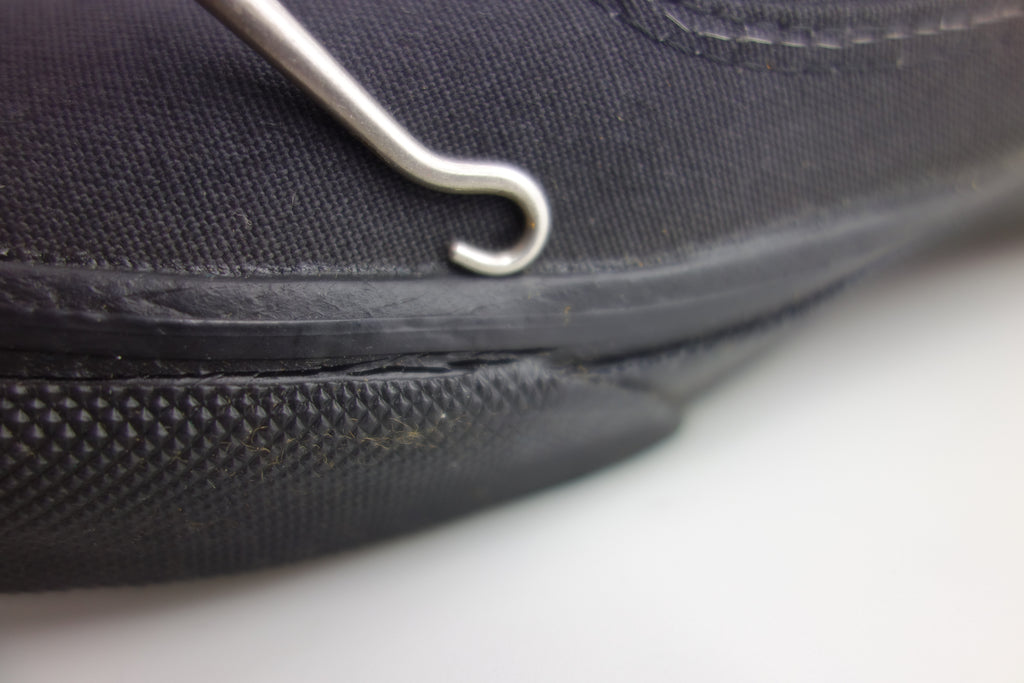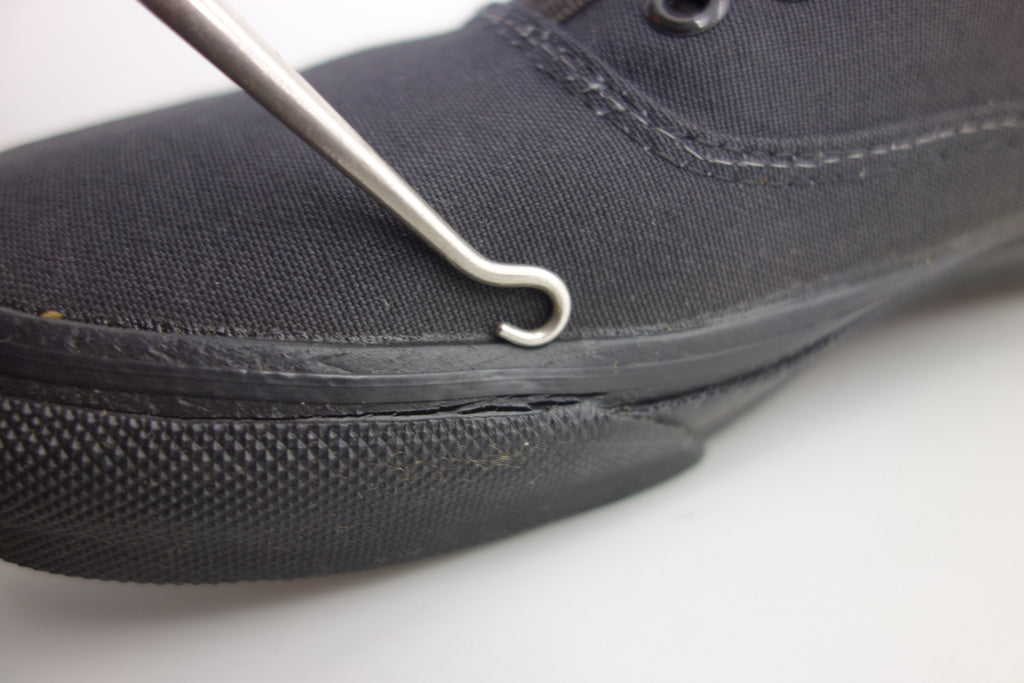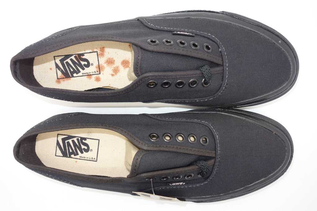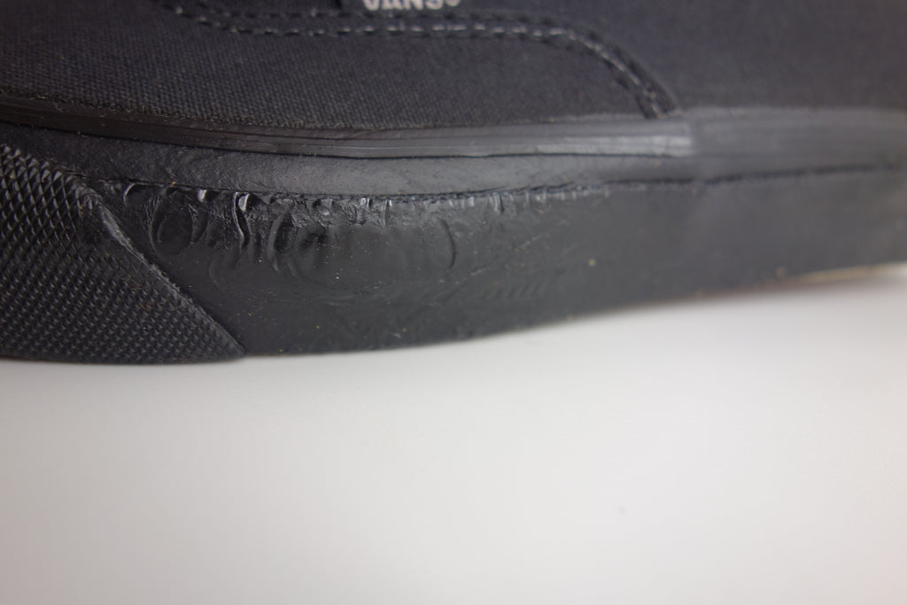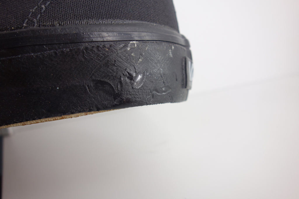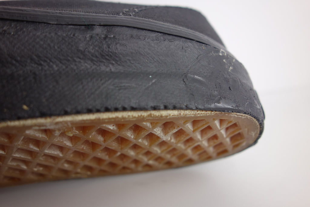 the US9 is pictured in full. it is unworn however the black midsole has succumbed to wet rot. it show impression marks & widespread tackiness. it does however remain soft & flexible. from experience using talcum powder remedies white rubber wet-rot.... so perhaps a black powder of some sort will remedy these.