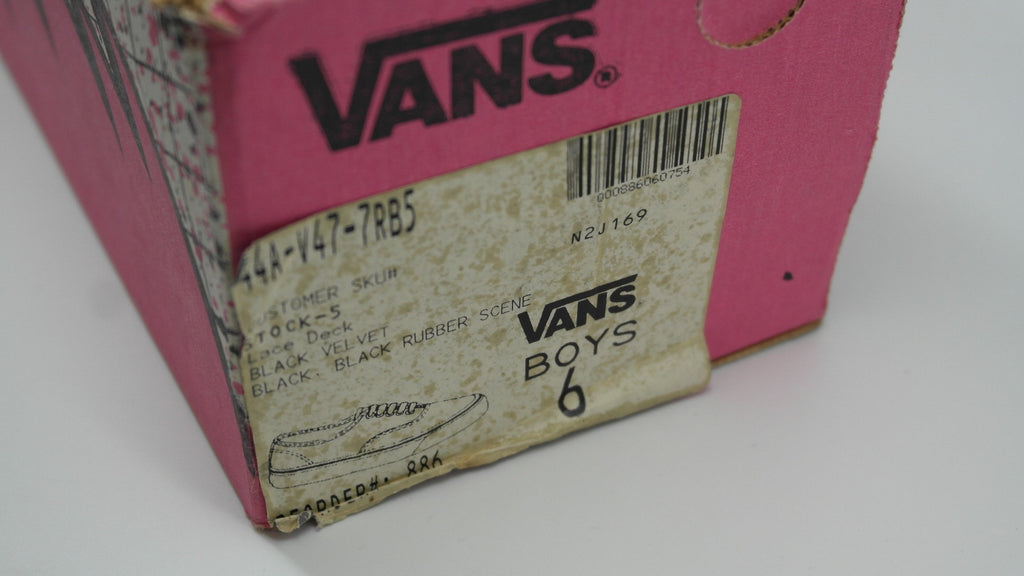 housed in womens pink box, these however are boys size 6 with a wider fit than regular vintage velvets.