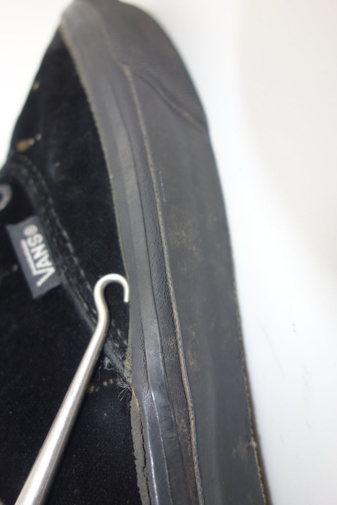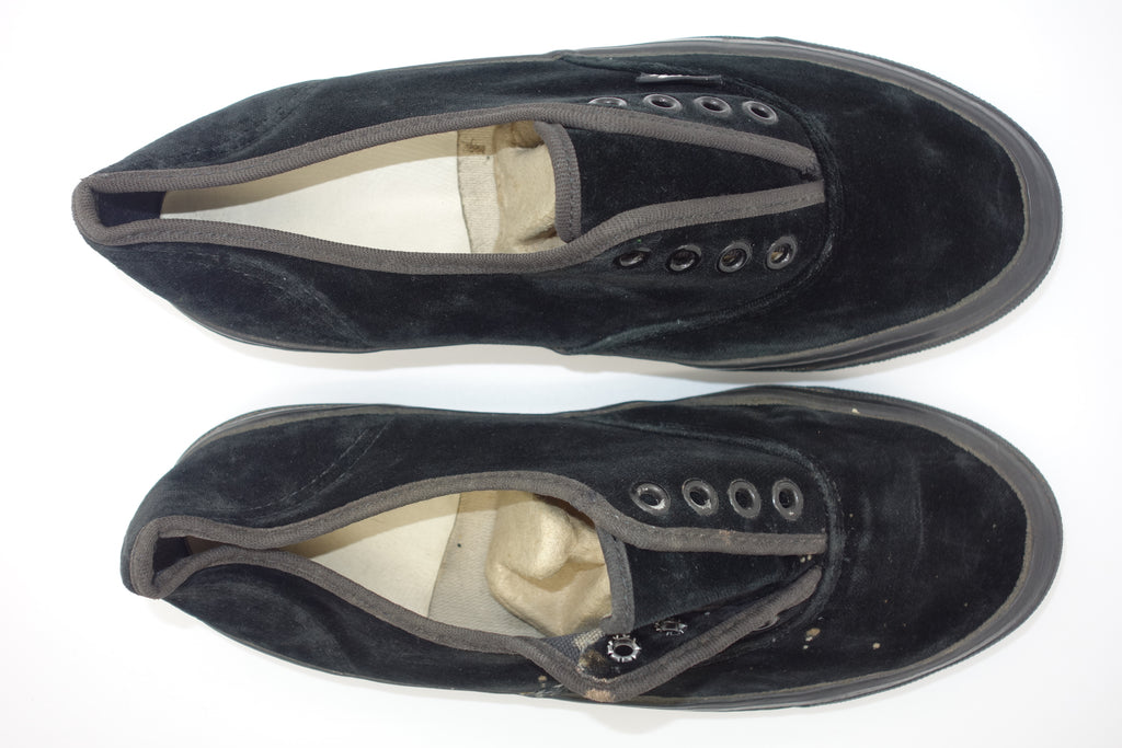 very good used condition. strangely only the right shoe looks to have seen use (a broken ankle perhaps?). left shoe is mint. rubber is super soft & flexible with only minimal micro-stress-cracking to foxing stripe area. sorry no original laces