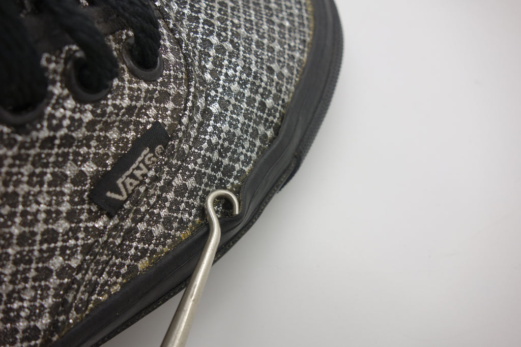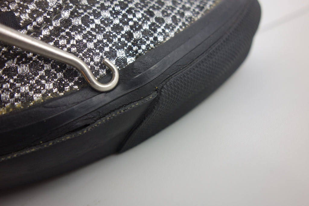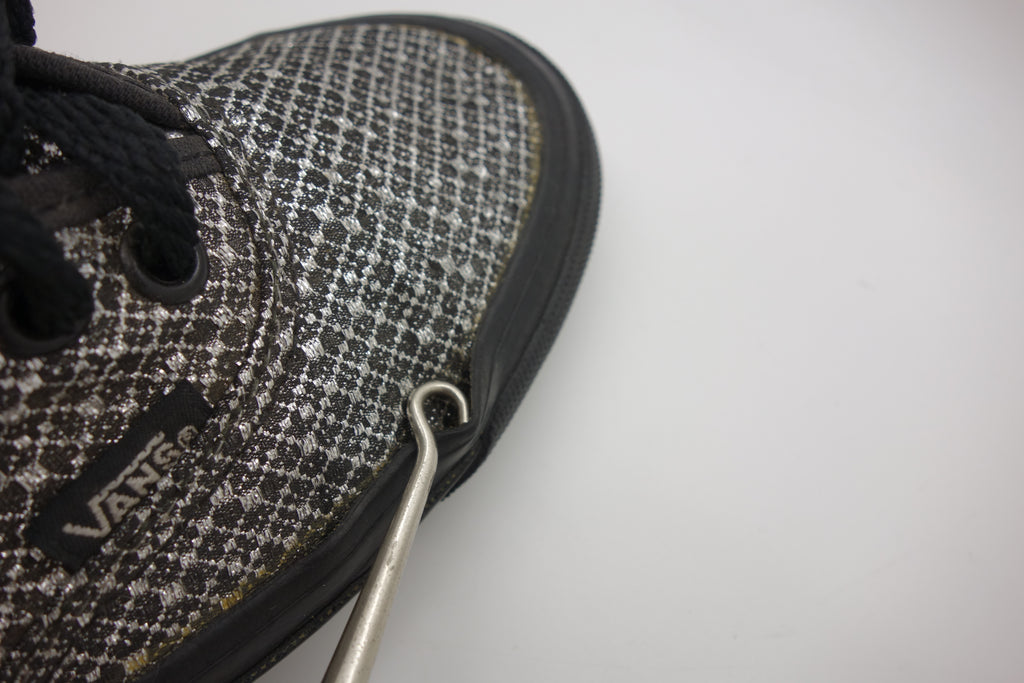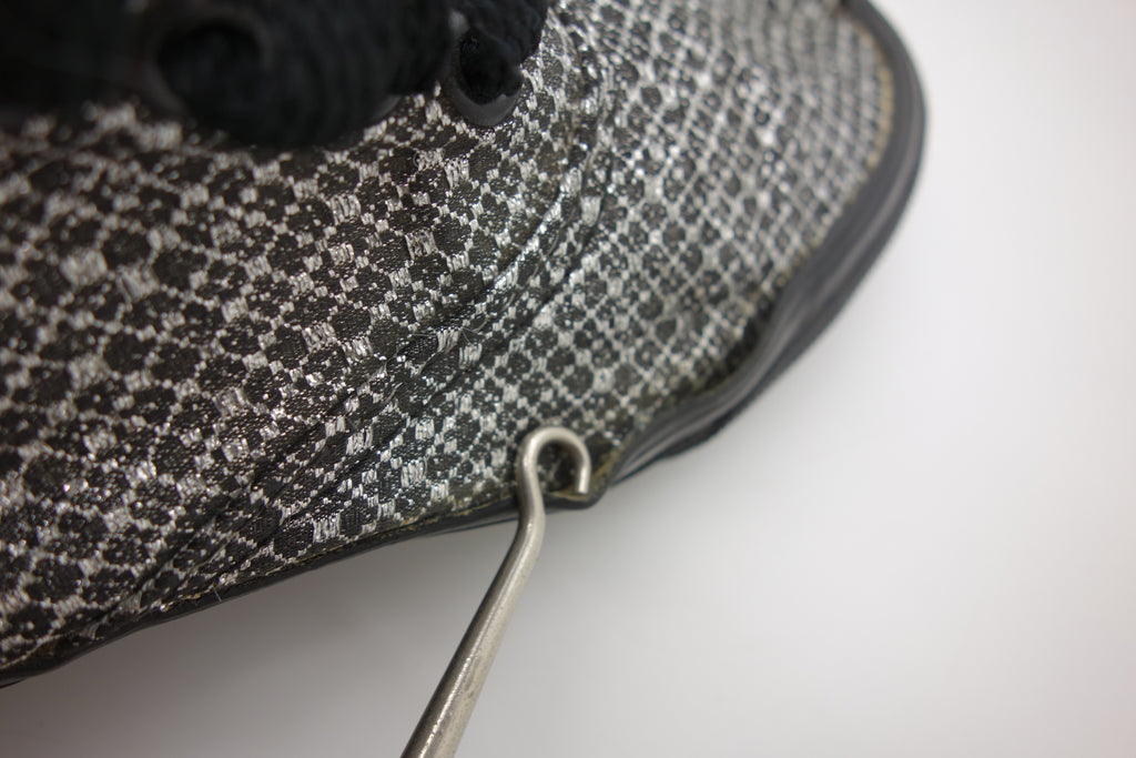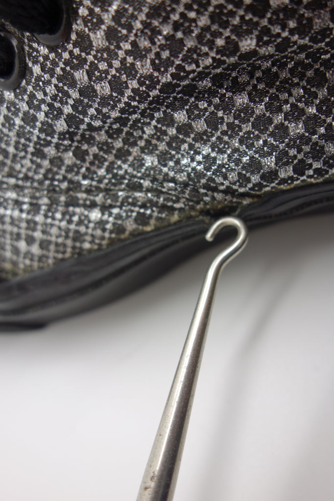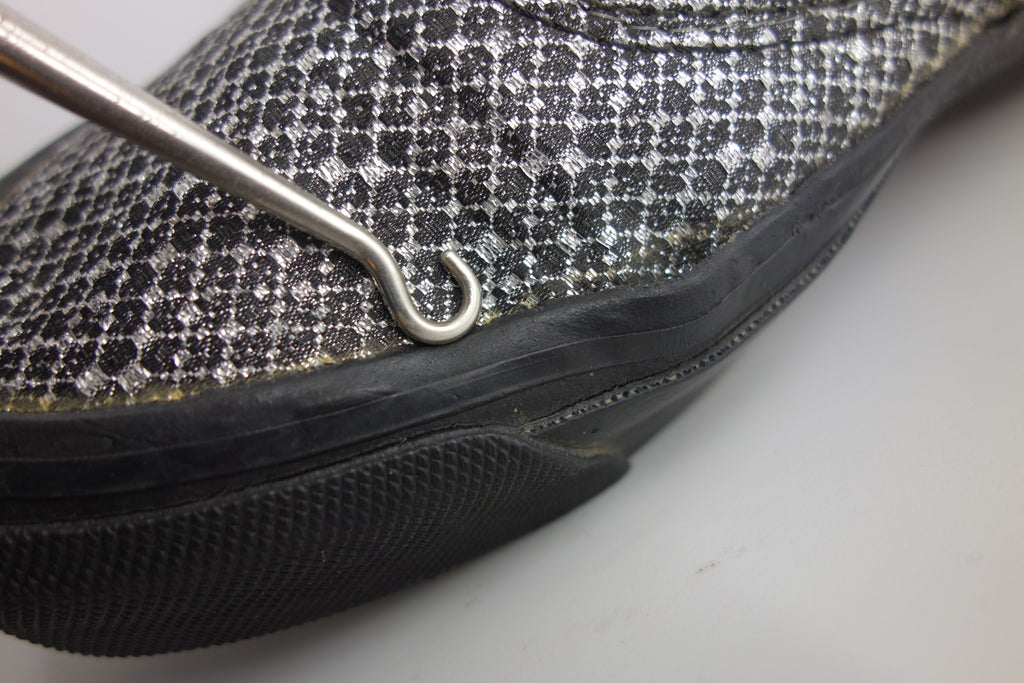 very good used condition. all rubber remains soft & flexible however its possible the adhesive meeting uppers has oxidised. minor separation shows however from experience this is likely to continue across the shoes, especially at the crease area. possible re-glue surgery could repair however will it hold over time?? wear at own risk. dunno what one calls this textile but the uppers themselves are textured glitter.