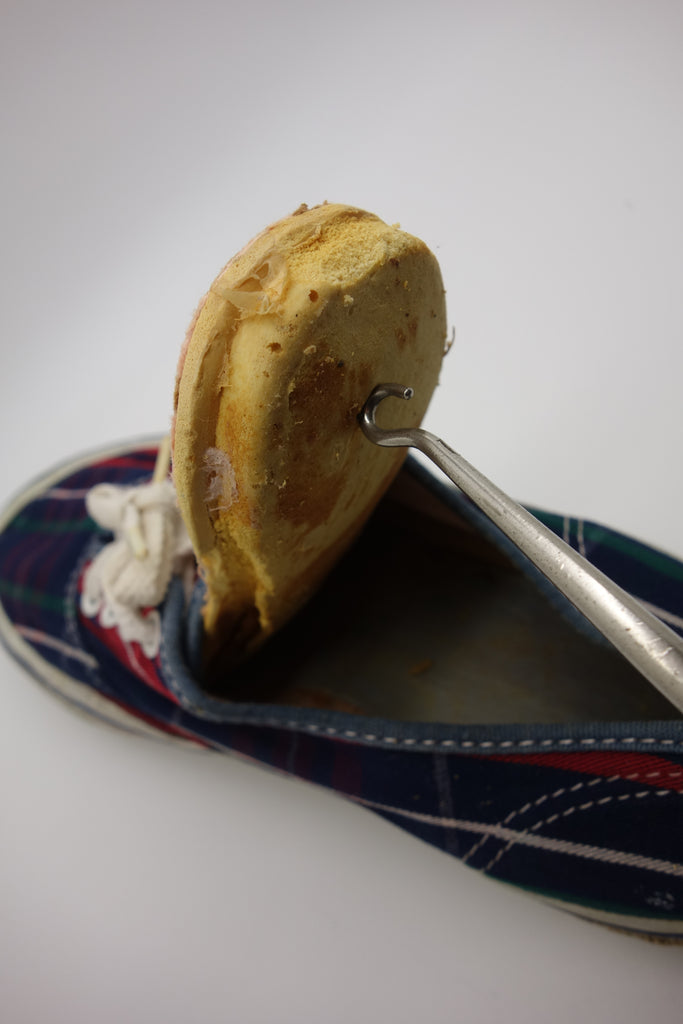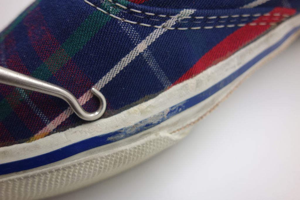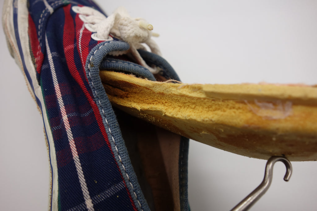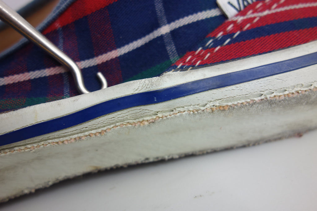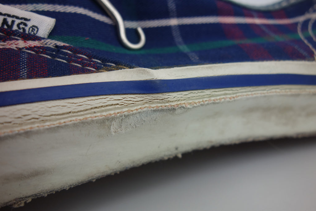 good used condition. all rubber remains soft & flexible despite widespread stress cracking from crush injury. both insoles saw attempted removal back to the arch. some crusting to the fiber form fill shows which will cause minimal dry rot breakdown. wear at own risk. size not visible but confident USw8.5 if not bigger.