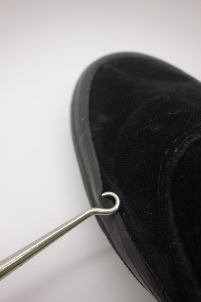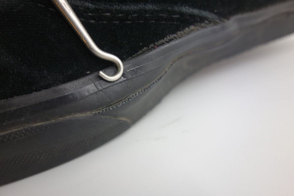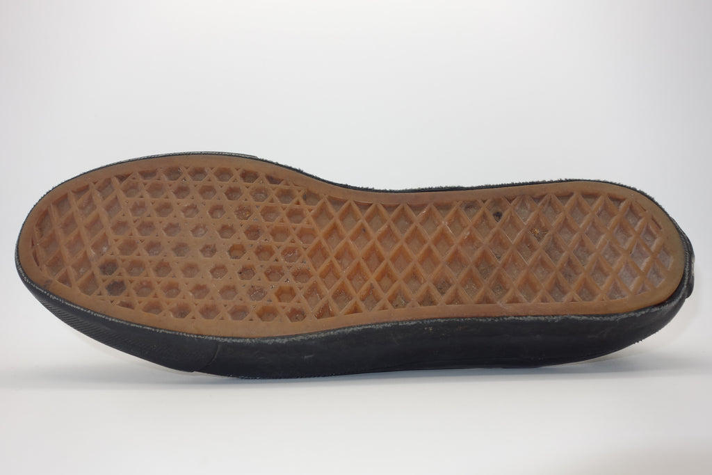good used condition. rubber is super soft & flexible. some velvet thinning & separation from rubber at toe creases. otherwise only minimal micro-stress-cracking to foxing stripe area.