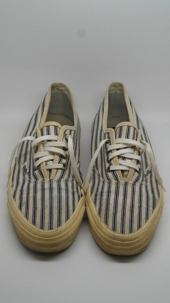 excellent used condition. the rubber is naturally ecru however has yellowed slightly. there is no ill effect to the rubber except minor separation at toe crease of right shoe only. these use a womens last & suit best women or men with slim feet