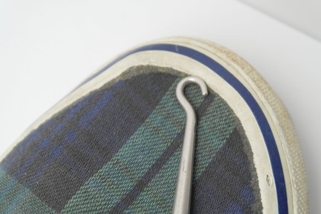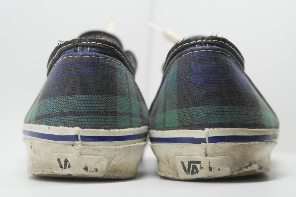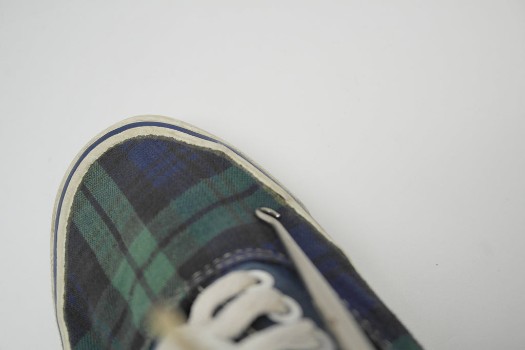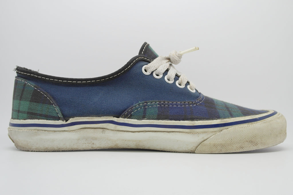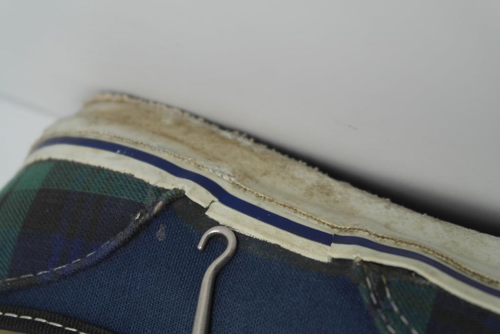 good used condition..... however the white rubber first foxing shows hardening in some areas. strangely the rubber has cured/solidified to the quarters only, where it meets the navy canvas. cracks already show & will continue in this area. otherwise there is hardening to the toes & heels however the important area around the forefott bend toe crease area remains soft & flexible. the midsole itself is unaffected. the foam footbed shows crusting on the external arch only but remains soft & impressionable. from experience these will hold up to normal wear despite some cracking & separation to the sides.