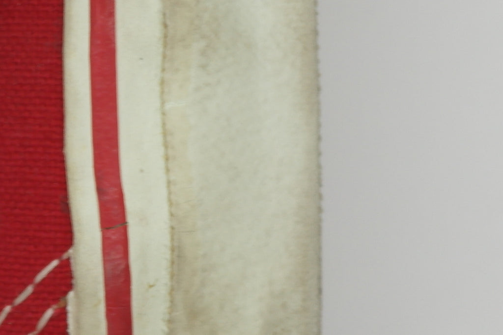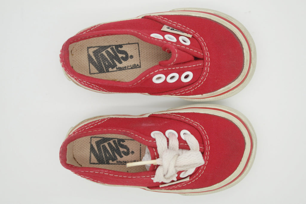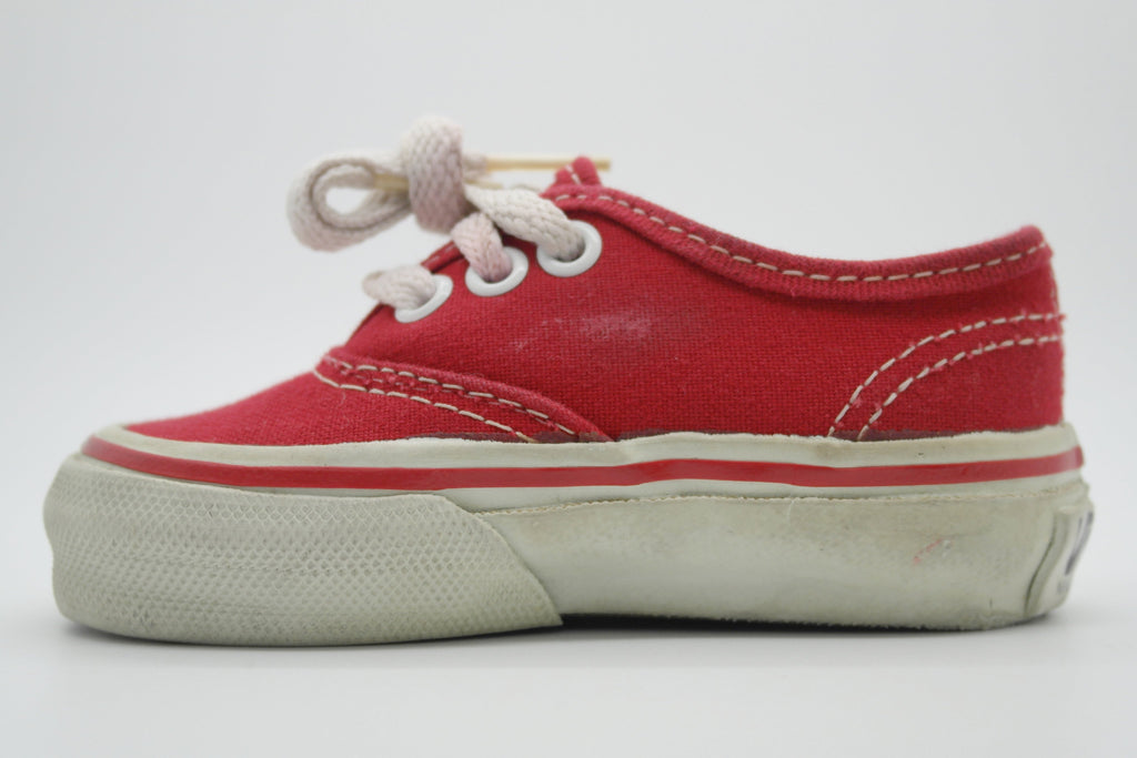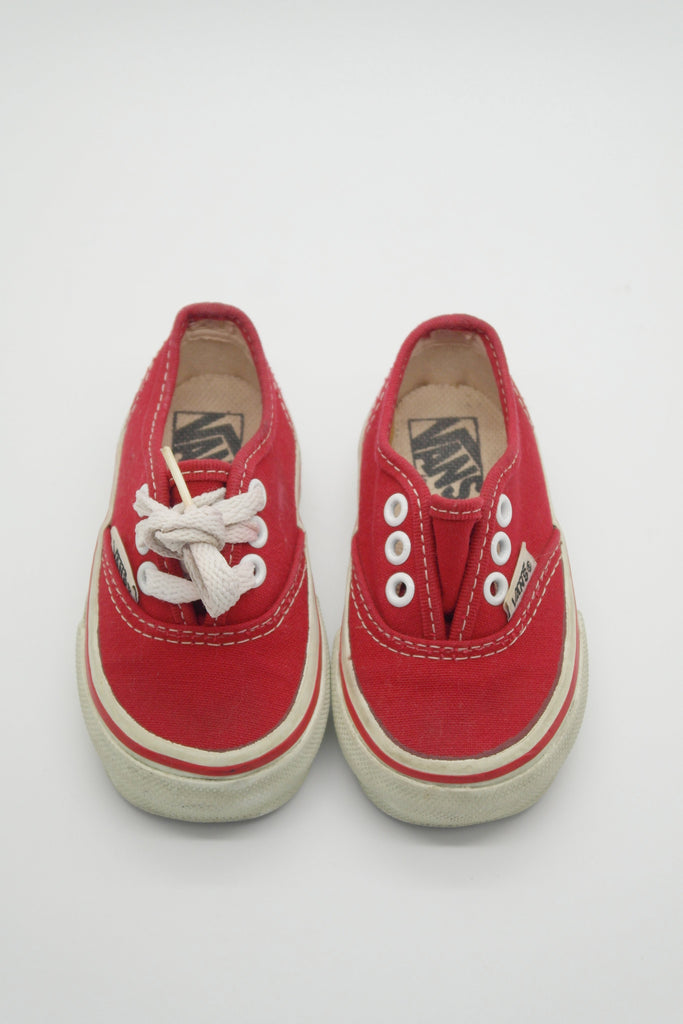 excellent used condition however the white rubber has solidified & shows cracking. both the first foxing & friction itself shows rubber hardening. saying that, at this age toddlers are not bending/flexing like crazy & will hold up to normal wear. 1 lace missing