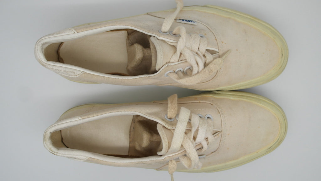 very good used condition however extensive rubber discolouration & curing results is solidified rubber that will crack & flake away, especially at the toe crease area. wear at own risk! size is not visible however length equivalent to US7.5 but they fit narrow & possibly more suitable for US7. please check measurements