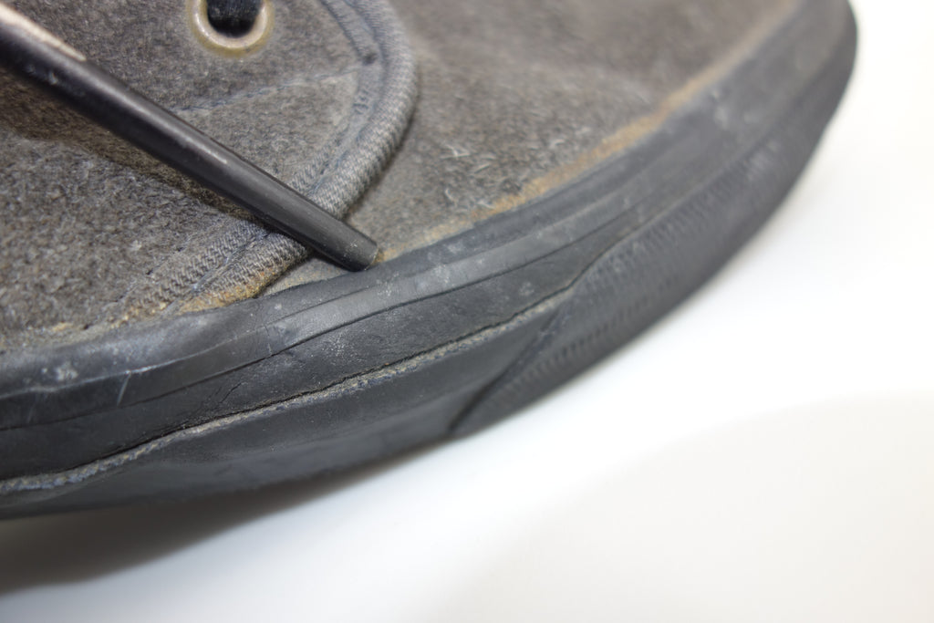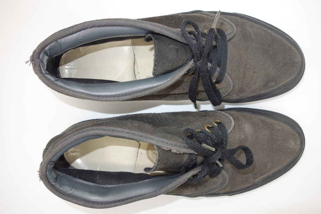 very good used condition. these have seen wear but were well-loved. all rubber remains soft & flexible. som ewear to internal heel counter on left shoe including cracking to the base.