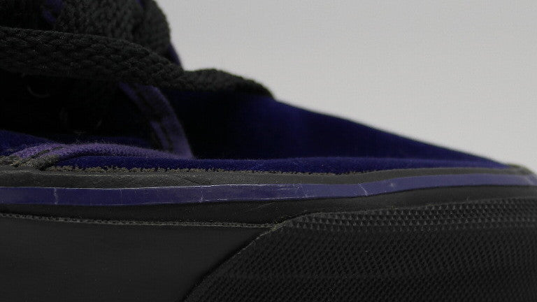 the USw8 shows micro stress cracking to the purple foxing stripe. this may result in flaking away of the stripe & premature aging. wear at own risk