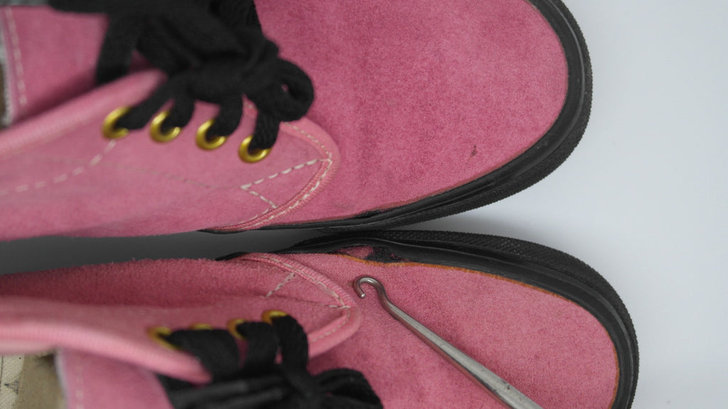 excellent used condition. the right shoe saw short-term use as a display model with minor suede fade & overglue discolouration. minimal separation between uppers & rubber at toe creases should be the limit of preamture aging & should hold up to normal wear.