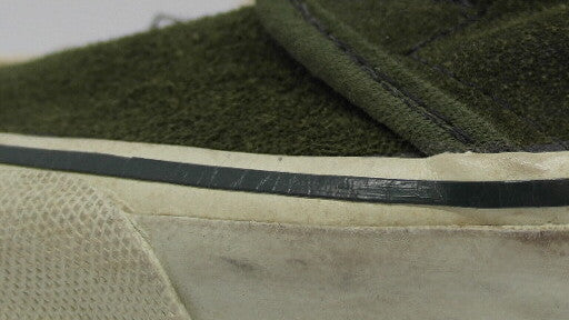 excellent used condition. the rubber shows minor dryness with some wrinkling upon bend at toe crease area. at worst the foxing stripe could flake away however this should not effect regular wear.