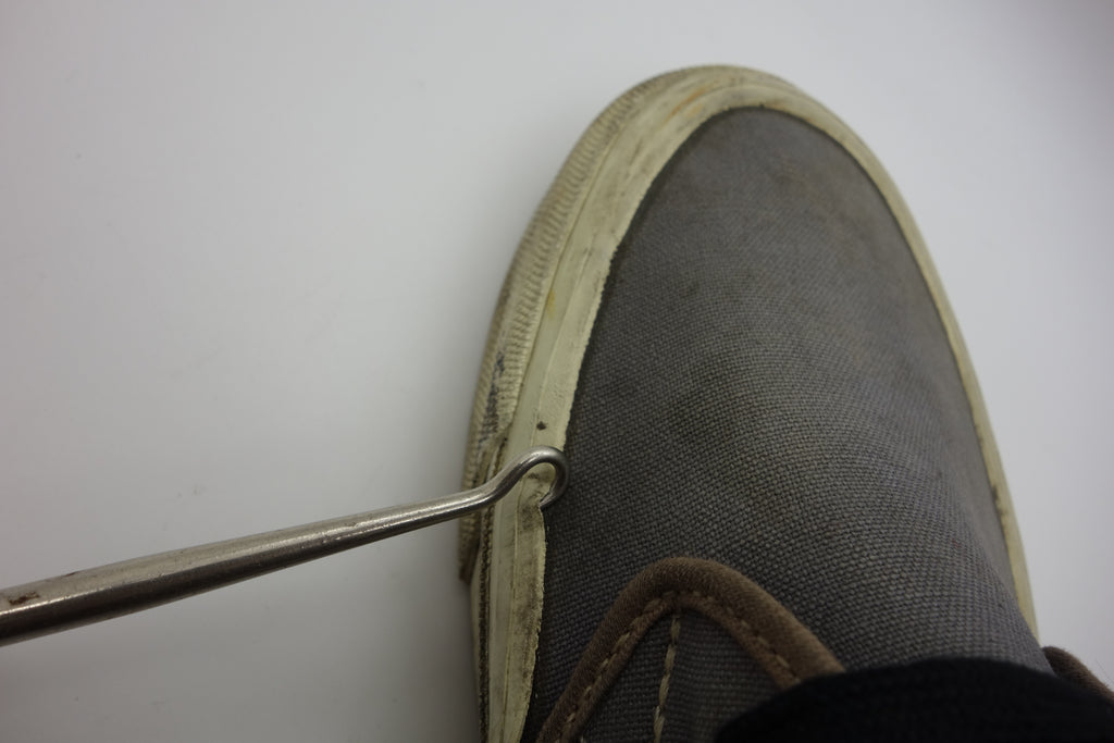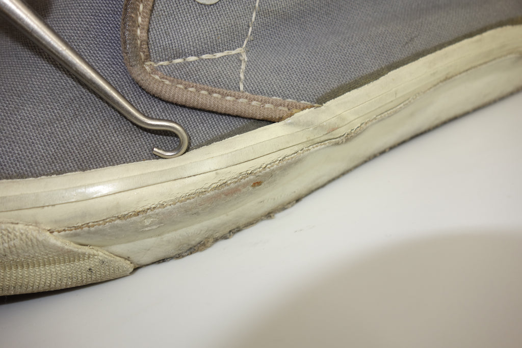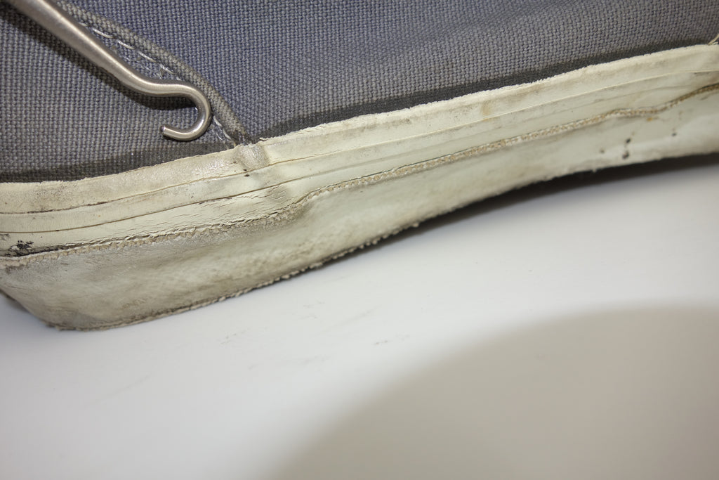 very good used condition. some dryness to rubber however remains soft & flexible throughout despite minimal micro-stress-cracking & separation from uppers at toe creases. size is not completely clear but very confident of US8.5. laces not original
