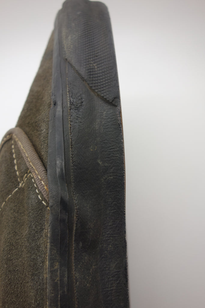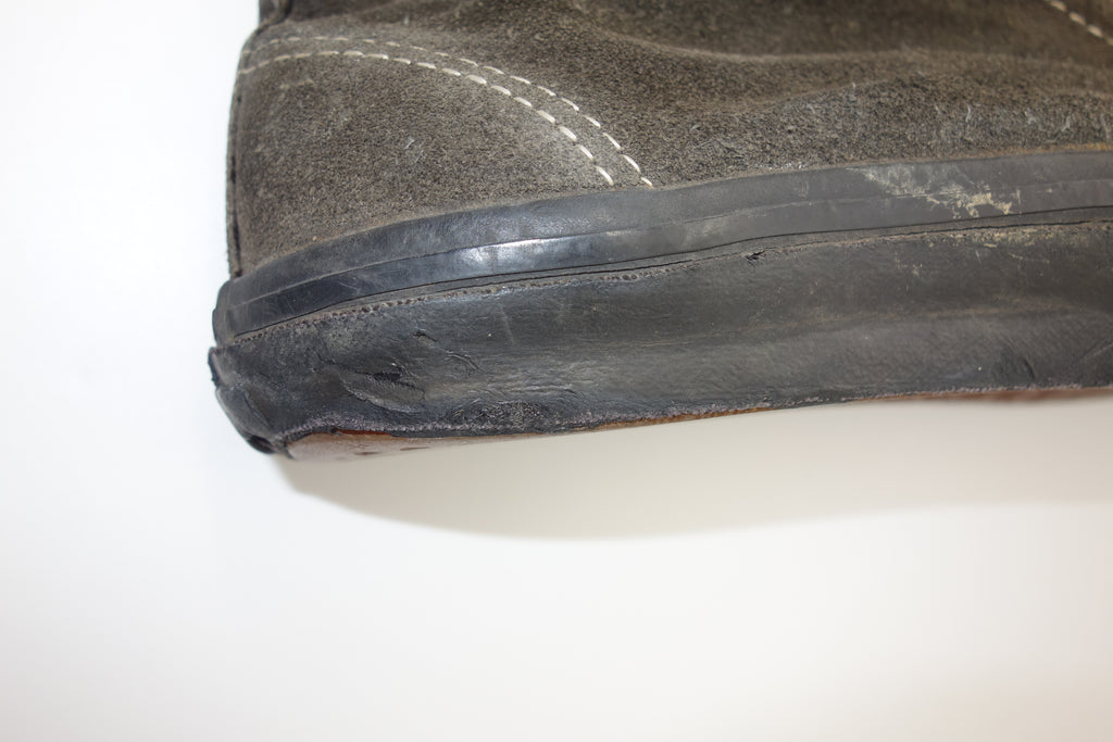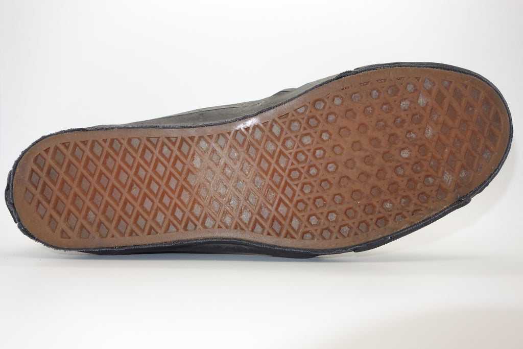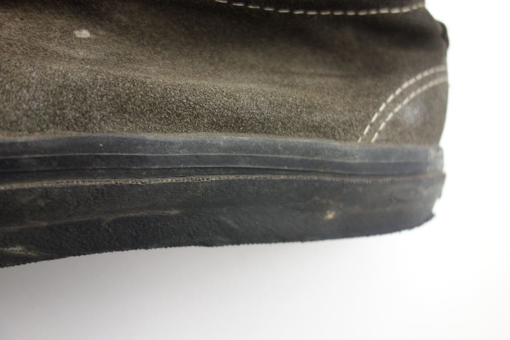 good used condition. the first foxing importnantly remains soft & flexible however the midsole/friction itself has cured/solidified in part. the hardening is not is not thoroughly widespread but in patches across the midsole & bumper. from experience these will hold up to normal wear however cracking & flaking of rubber will occur eventually. wear at own risk