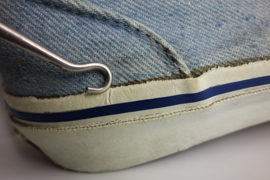 excellent used condition, perhaps only worn a couple times. all rubber remains soft & flexible except the lateral right heel & the lateral left quarter which has hardenend slightly. these areas are less vulnerable to bending however & should not effect wear or longevity too dramatically. laces not original.