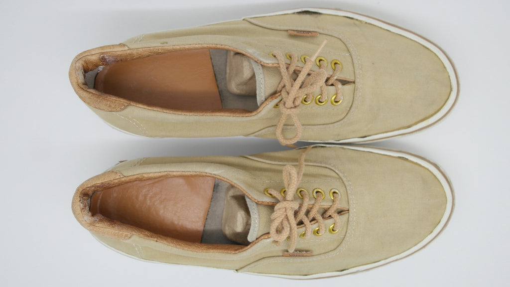 very good used condition. rubber remains soft and flexi however does show areas of separation between the uppers at toe creases, which has been unsuccessfully repaired with glue. there is wear to the inside lining at the pinky toe area on both shoes. there is a ridge on the footbed of the left shoe which may cause discomfort. size is not visible however im confident they are US11. check meausres!