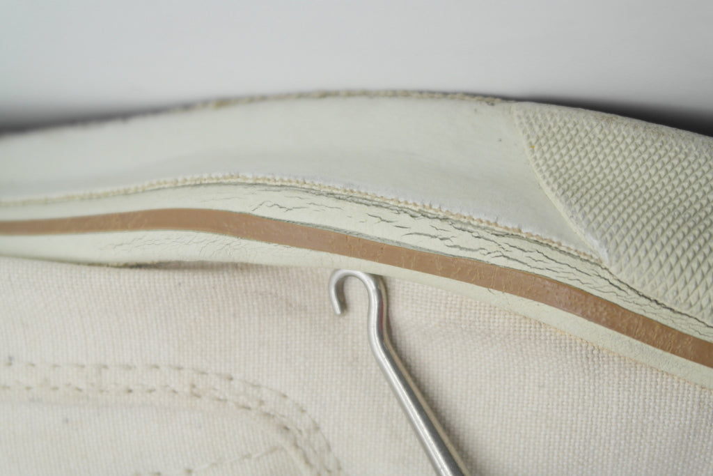 good used condition. rubber is dry & a little crusty in parts but remains soft & flexible on the whole. widespread micro-stress-cracking from crush injury. minimal wear to insole at left big toe. from experience will hold up to normal wear