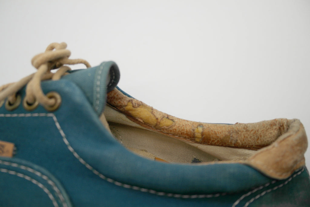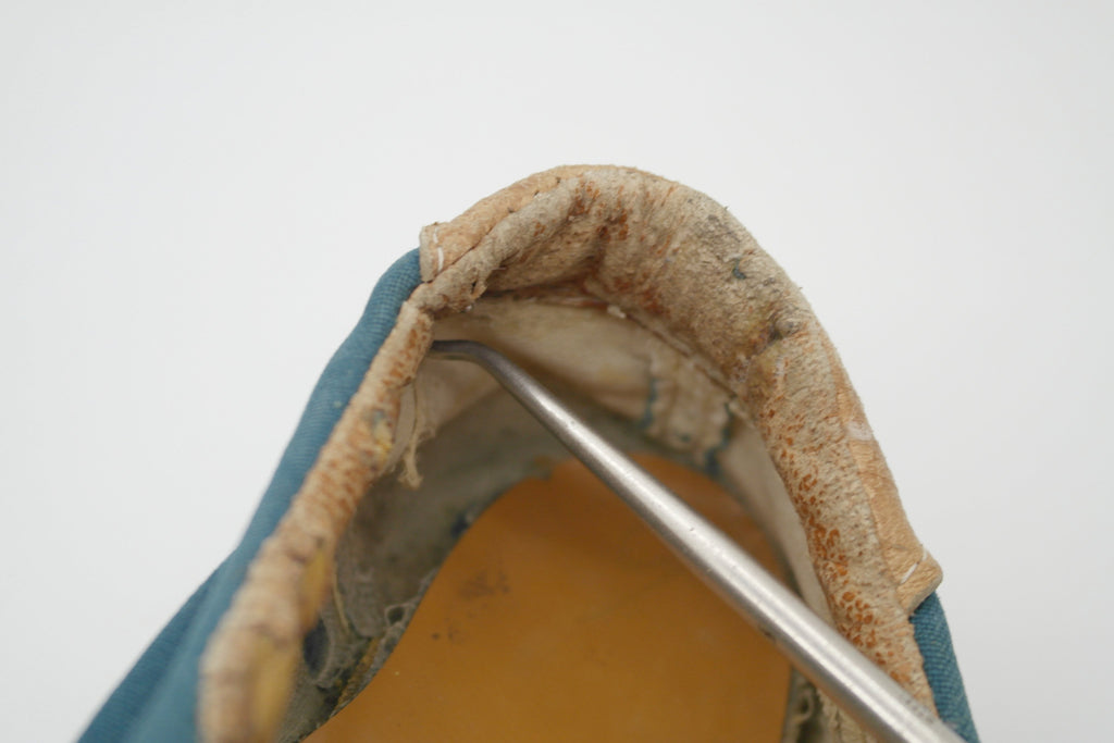 good used condition. the rubber shows very very minor dryness & wrinkling upon bend, however no hardening. the pigskin trim collar shows wear & exposes the underlying foam in parts however looks to have been sealed with something, & remains intact & soft. the internal heel counter looks to have faced complete breakdown & the plastic was removed by previous owner. this does reduce stability at the heel however will improve comfort. the top & bottom edge of the friction has crusted somewhat as tacky areas dry. with wear this will soften. size not visible but confident US8.5