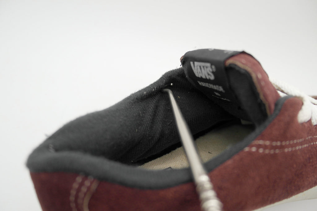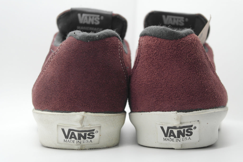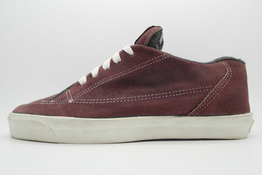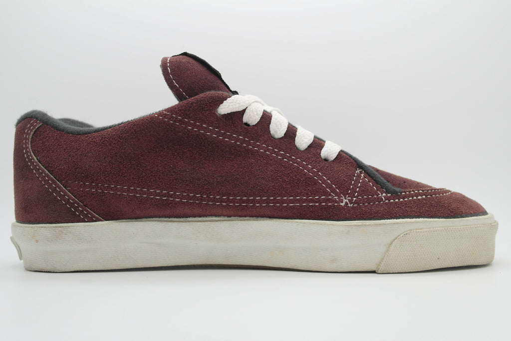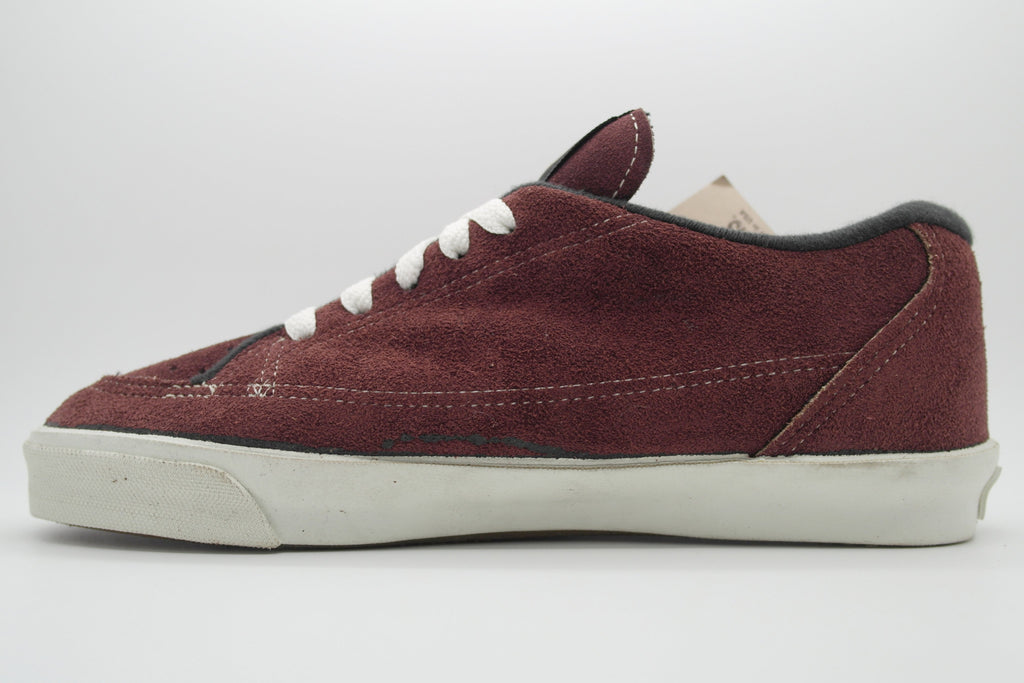 the left shoe saw short term use as a display floor model with resulting rubber & suded discolouration. the integrity of the rubber is unaffected. the fiber-fill sponge foam of the tongue & heel is intact however may perish over time & leave black residue on socks & insole. the foam of the lateral left shoe has slipped somewhat from the upper collar & sits lower on that side.