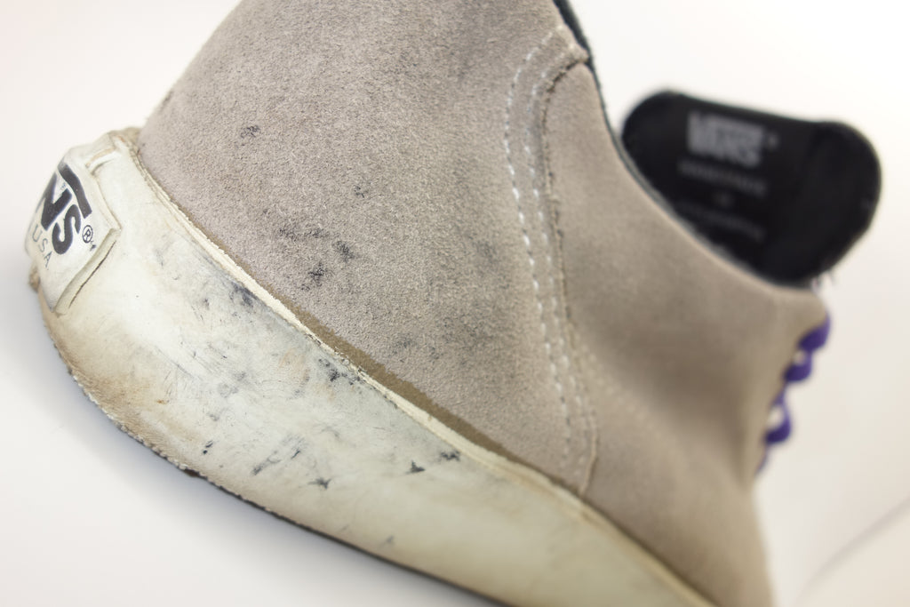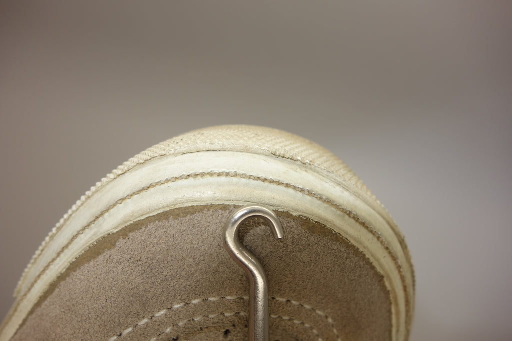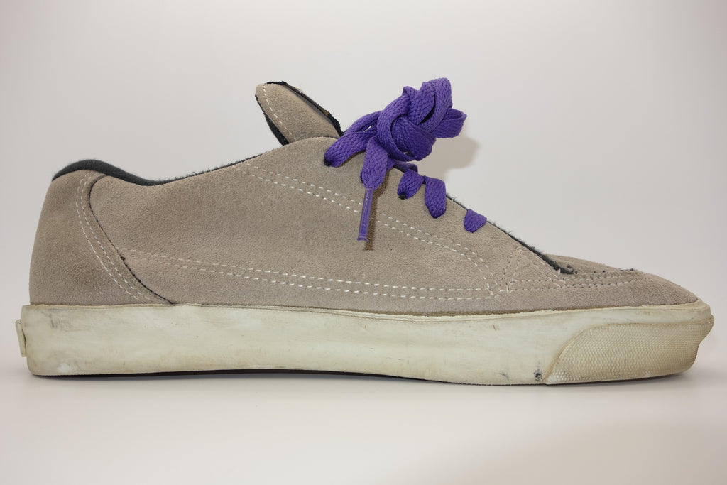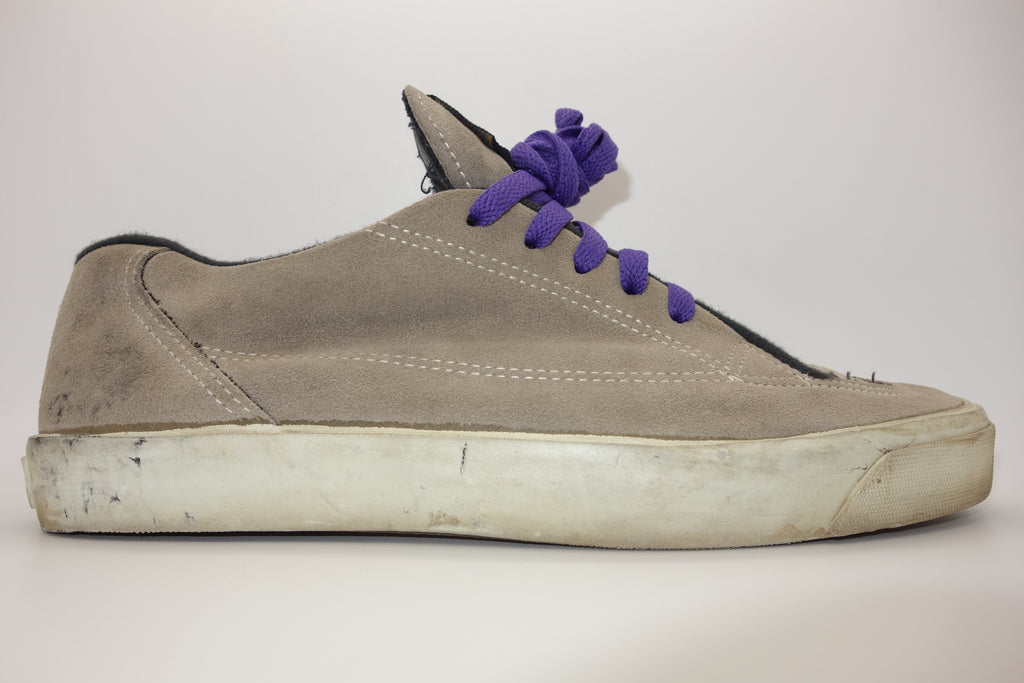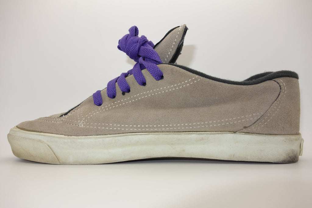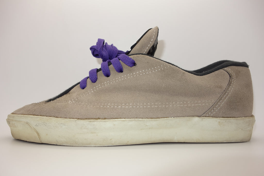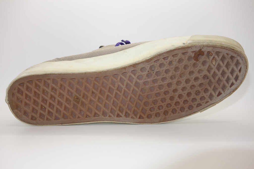 excellent used condition. all rubber remains soft & flexible. some greasy blemish to rigth lateral heel. some hard rubber at left toe but not in area vulnerable to bending. fiber-fill foam in tongue may perish with use leaving black residue on socks & insole. laces not original