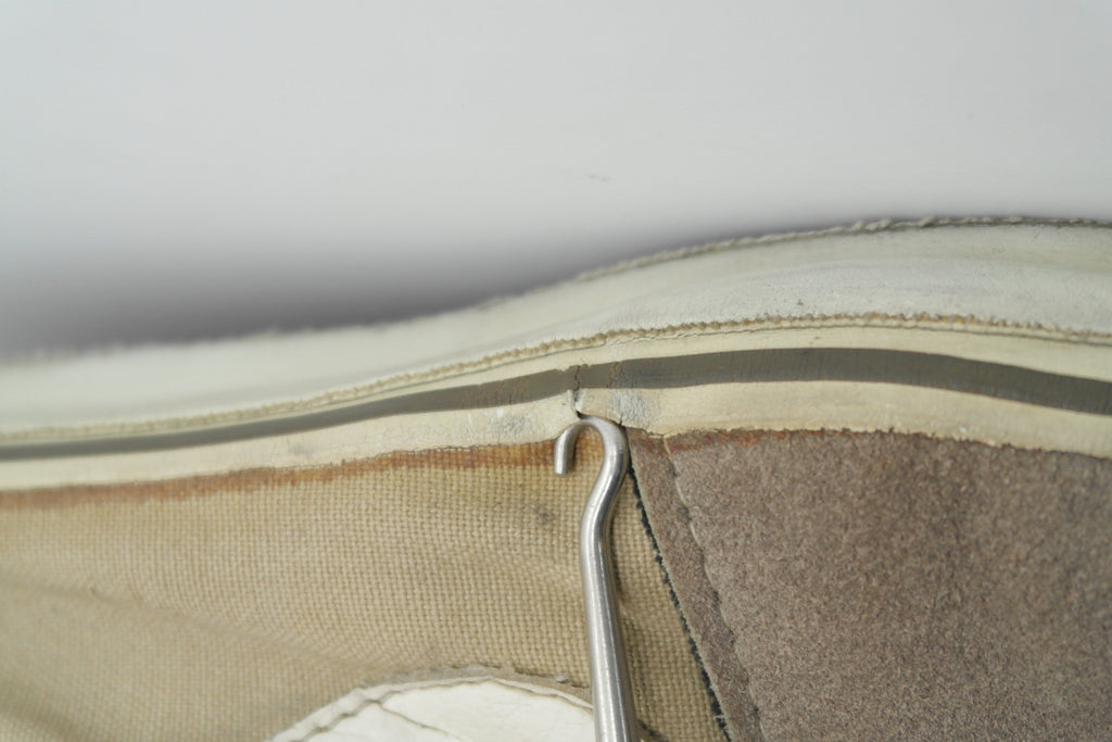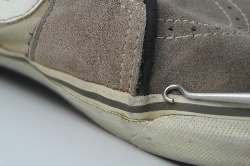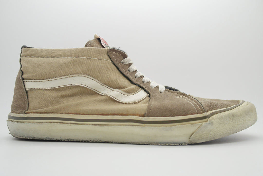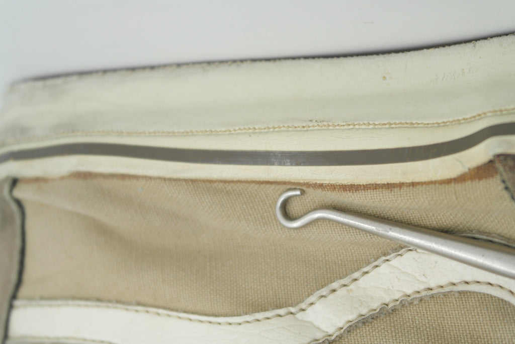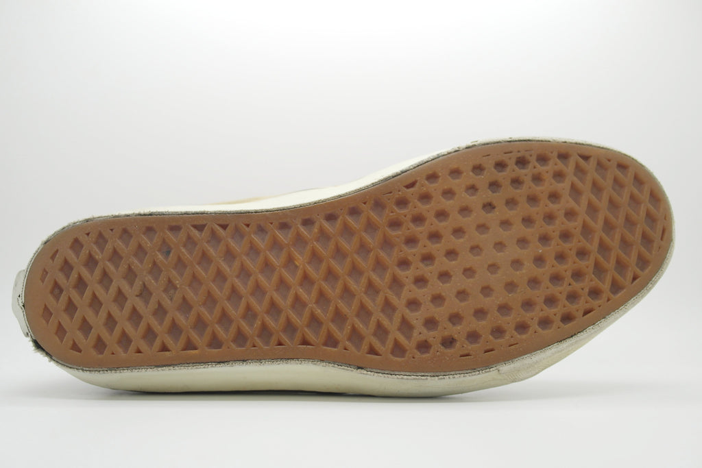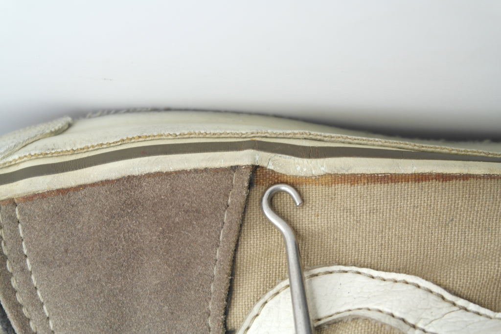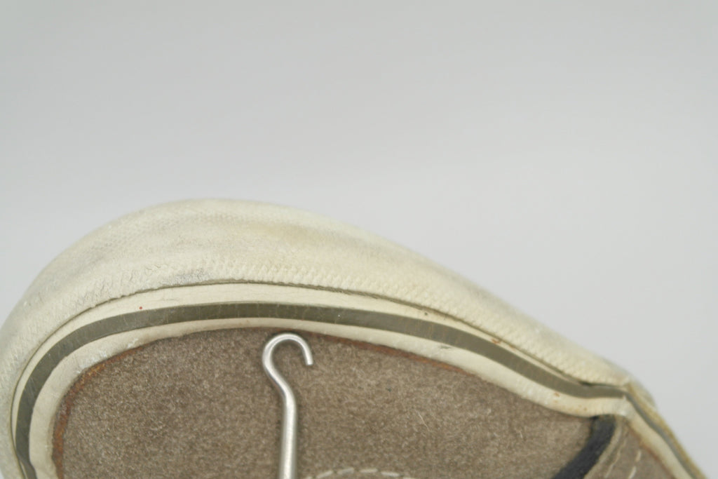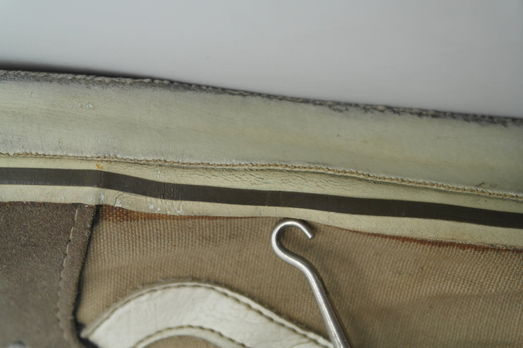 good used condition. the rubber remains soft & flexible however does show dryness & some crusting. widespread surface micro-stress-cracking & some splitting to rubber at seams & toe creases. from experience these will hold up to normal wear with possible flaking at pressure points. internally the insole is somewhat hard & possibly the foam has dried, but not completely rotted. size no longer visible but consistent with US10 if not US10.5. some wear to inner lining at right toe through to suede.