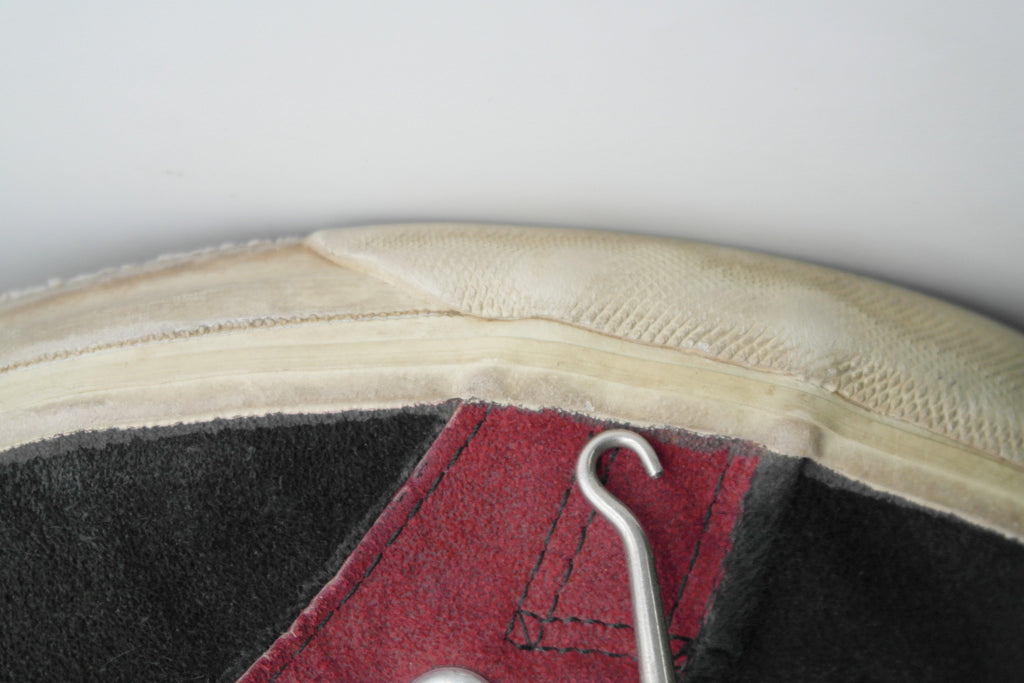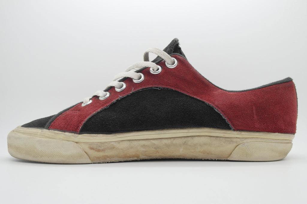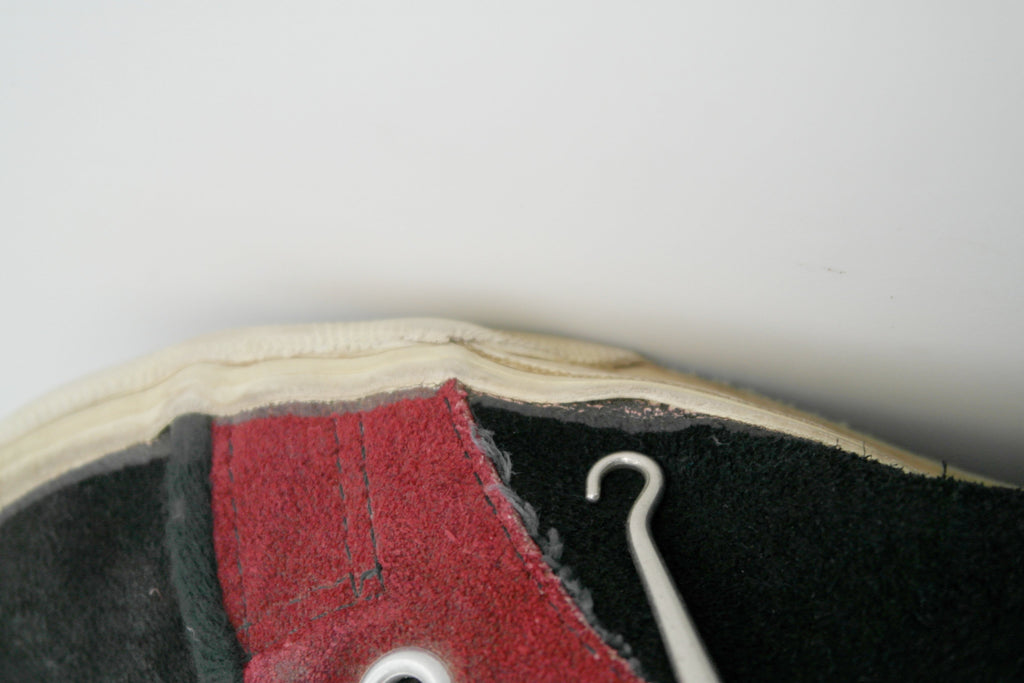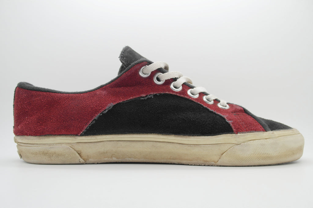 very good used condition. rubber is without issue apart from a few spots of minor hardening.... strangely only to the first foxing above the brick coloured suede. as such the majority is at the heel & should not effect bend & even at the front arc appears to miss the toe crease area. despite this i feel these will hold up to normal long term wear. size not visible but confident of US10 if not US9.5. laces not original