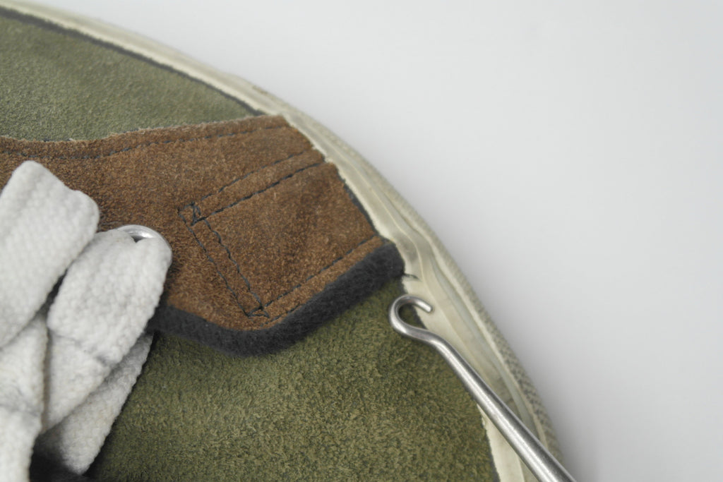 excellent used condition. rubber remains soft & flexible throughout except for 1 tiny hotspot on the left lateral eyestay, not even the width of the hook in 2nd last pic. rubber may crack in this 1 spot however should not be exposed to great bending pressure. otherwise minor splits to rubber at seams & minimal micr-stress-cracking from crush injury.