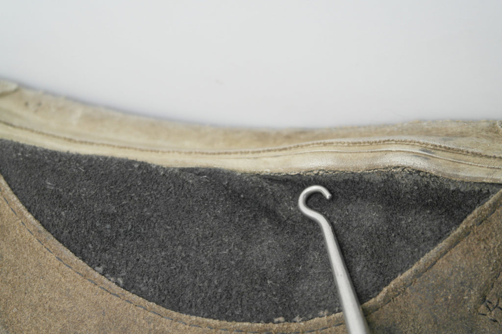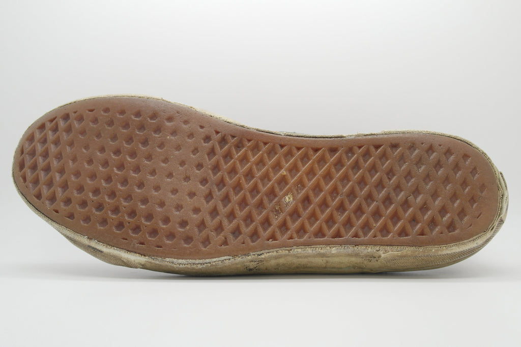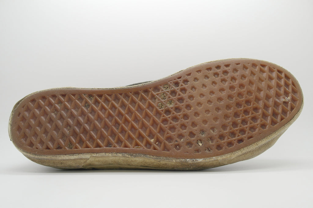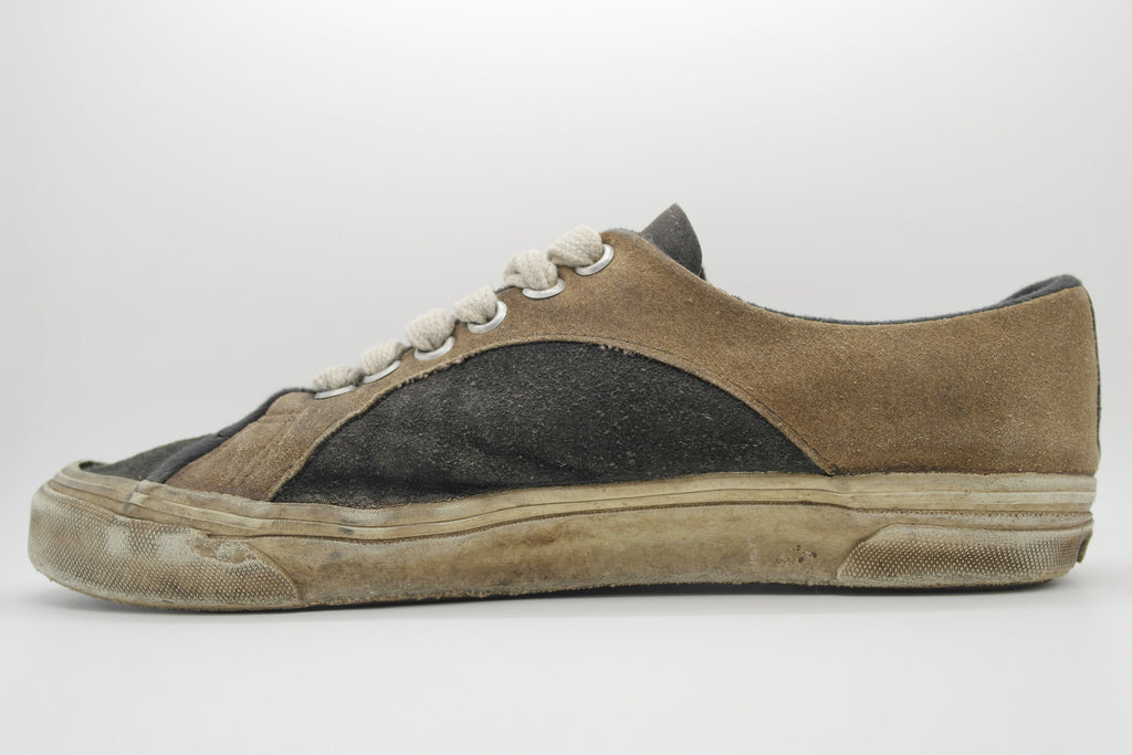 good used condition. these have seen significant wear but were well loved & the foundation remains sound. the rubber is somewhat dry but remains soft & flexible throughout. minimal separation with suede apart from at both toes.... but no holes present. some wear to the foam insole at the heel. these were owned by a haidresser & the laces are internally caked in hair. this may be abject to many but changing the original laces will be left up to the buyer. 11 is visible in 1 shoe but possibly US11.5 if not 11. check measures
