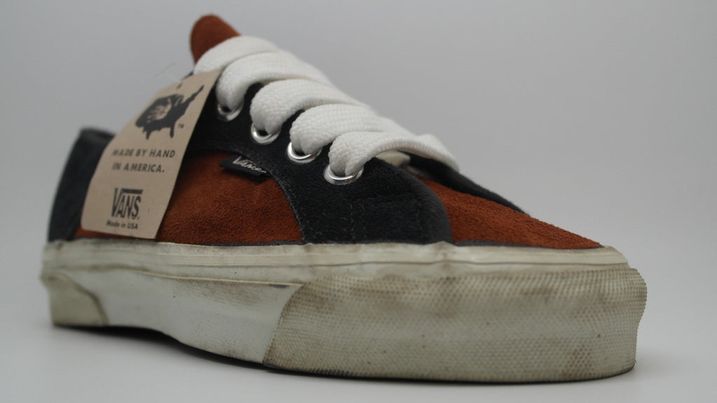 very minor storage wear. the US4 comes with skinny laces. the US5 with fat laces.
