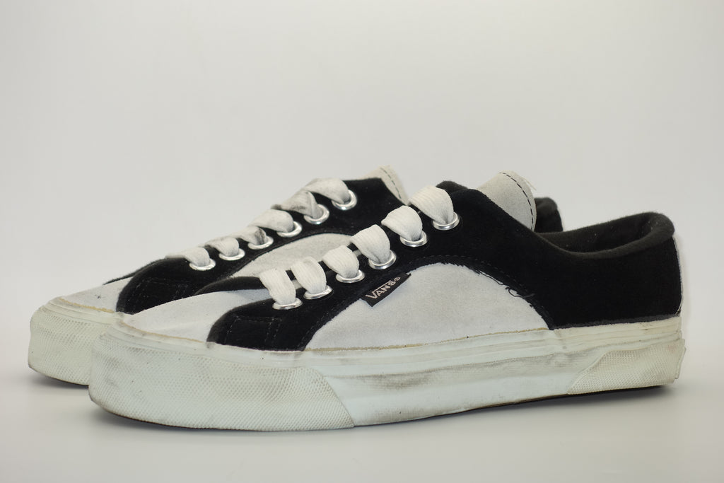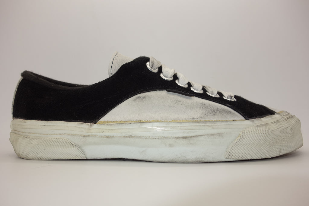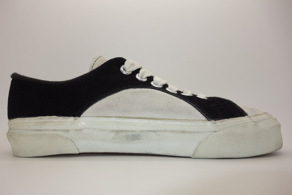 both shoes list US7 but possibly fit big like US7.5. all rubber is soft & flexible. the right lace is soiled with grease from the eyelets.