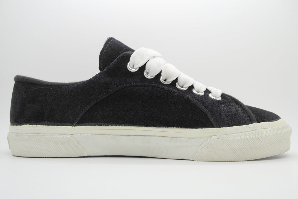 unworn HOWEVER THESE ARE DEFECTIVE! the first foxing has completely cured in parts, showing hairline cracking & will continue to crack & flake away over time. the waffle & friction itself is unaffected however the majority of the first foxing (foxing stripe area) will be lost. the foundation of the shoe will hold up over time but significant chunks of rubber will be lost. wear at own risk. uppers essentially appear black but the spec is navy blue. box has band of brown tape around it