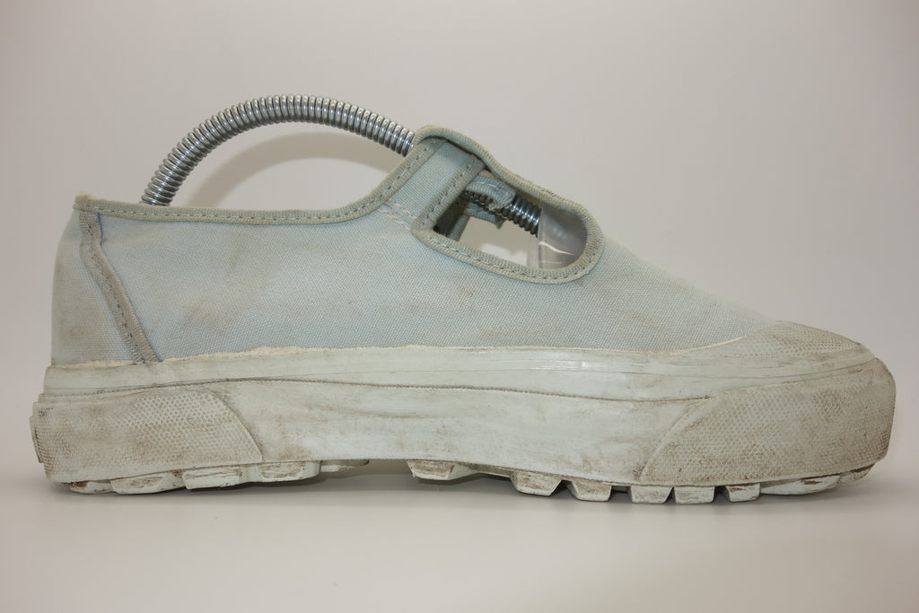 good used condition. the lug sole is rigid by design however remains soft & flexible. colour is powder blue, more visible in reality