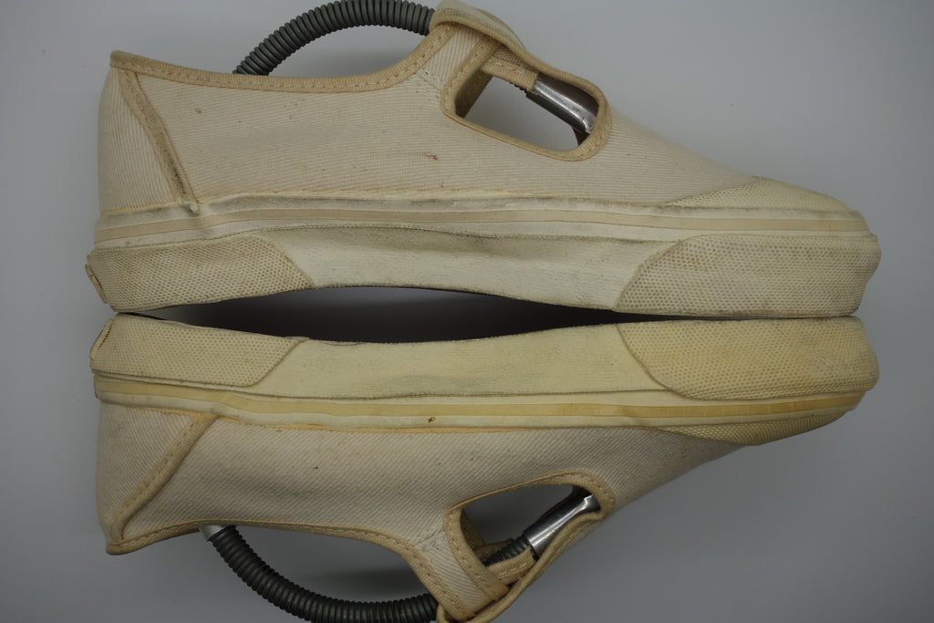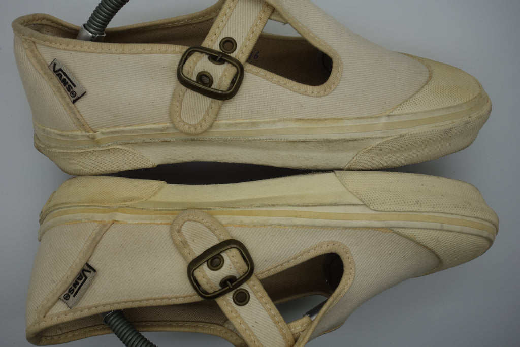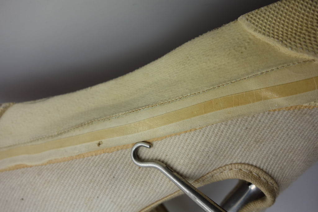 THESE ARE CUSTOM NARROW WIDTH. WOMENS SIZING IS ALREADY SLIM COMPARED TO MODERN FITS SO THESE SUIT FEMALES WITH NORMAL TO NARROW FEET ONLY. these show evidence of exposure to light with resulting widespread yellowing of the rubber, predominantly on the right shoe. the midsole remains soft however the foxing stripe especially may chip & flake away. from experience these will hold up to normal wear however wear at own risk.