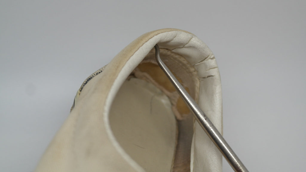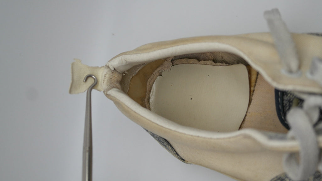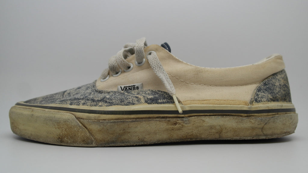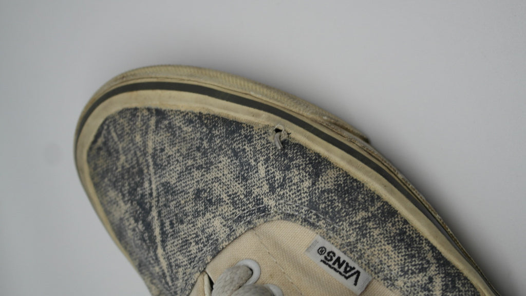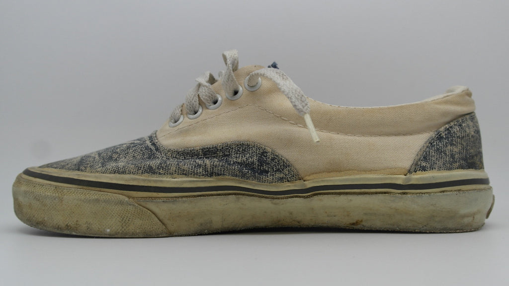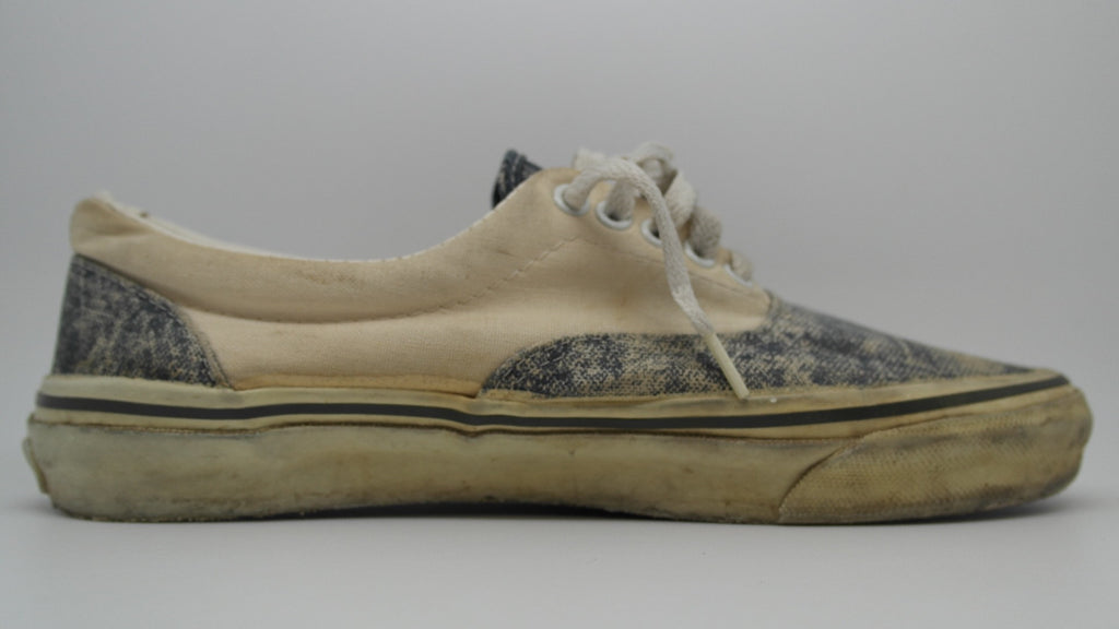good used condition. rubber midsole does show minor dryness but remains very soft & flexible. amazing shape to these. minor separation between rubber & uppers at toe crease. wear to internal heel cap & vinyl collar. size is not visible. they measure up like US8.5 but fit small. check measures
