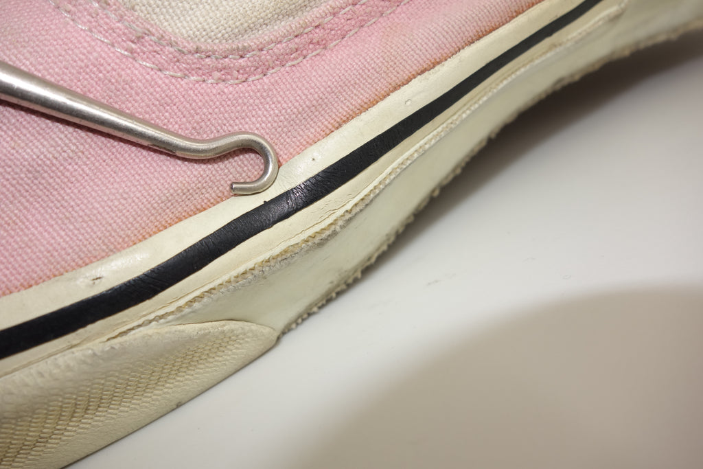 very good used condition. all rubber remains soft & flexible. minimla separation between uppers only at toe creases. minor stress cracking from crush injury. size not visible however confident of US10.5. laces not original