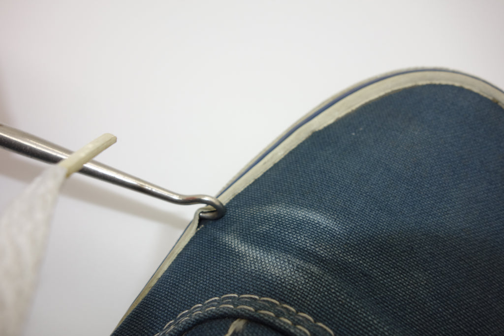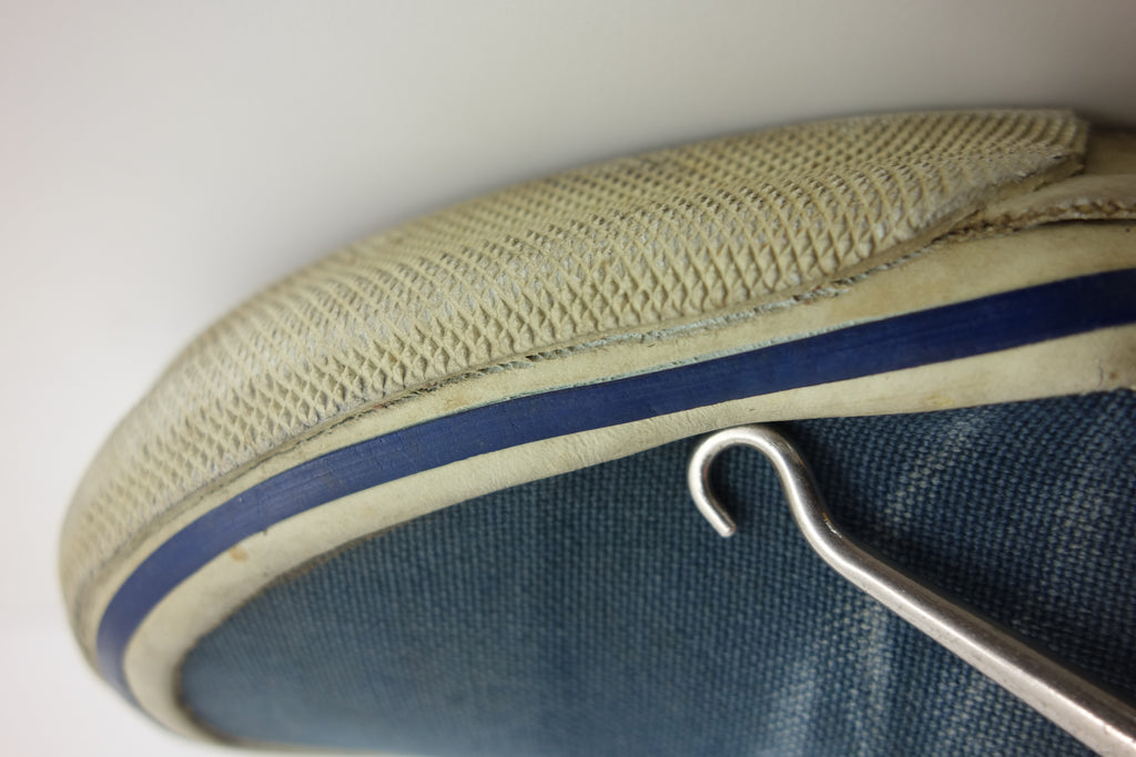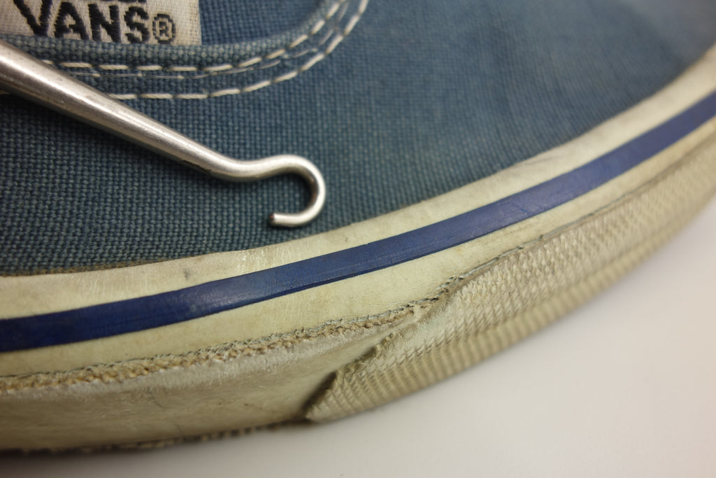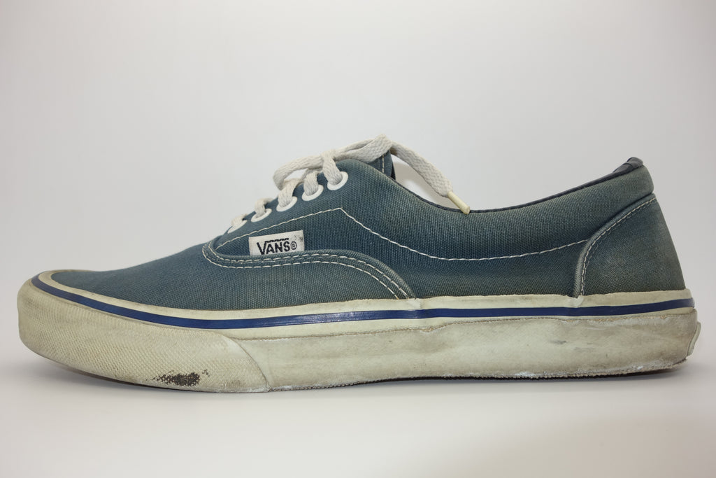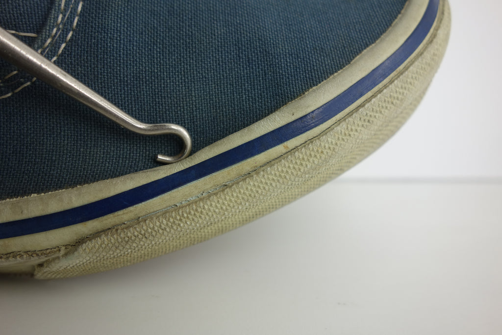 good used condition. the white rubber first foxing stripe area is somewhat dry however remains soft. some stress cracking & separation from uppers at bends. the left collar shows vinyl splits at the base however intact.