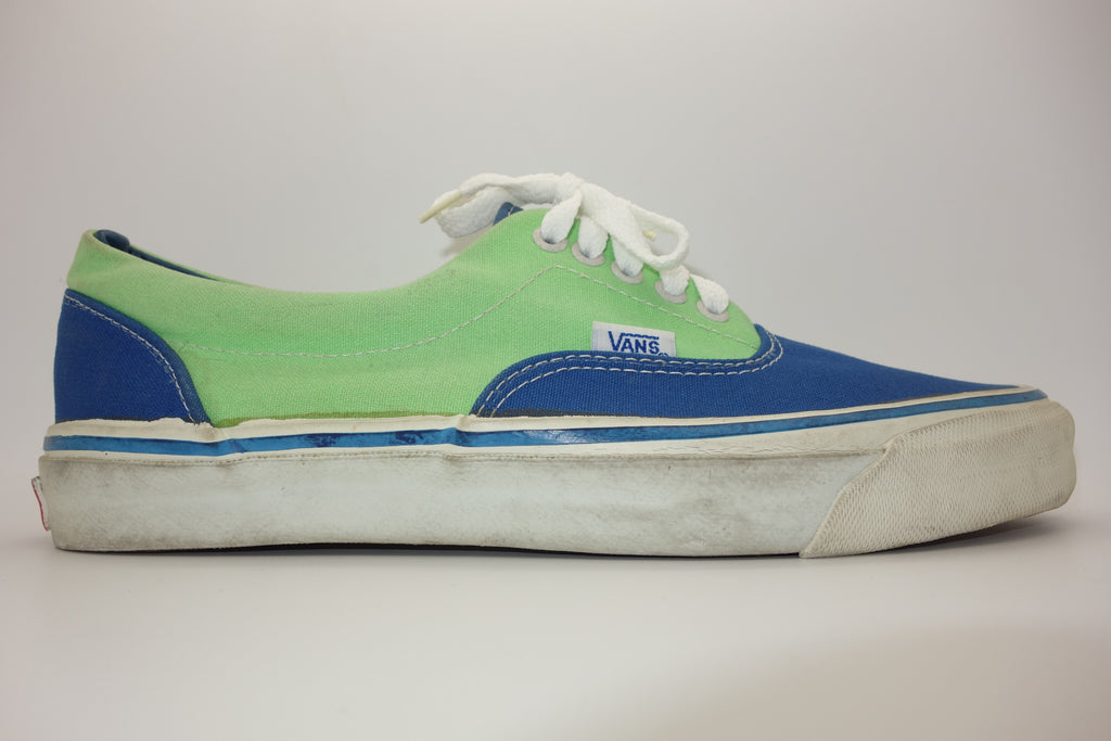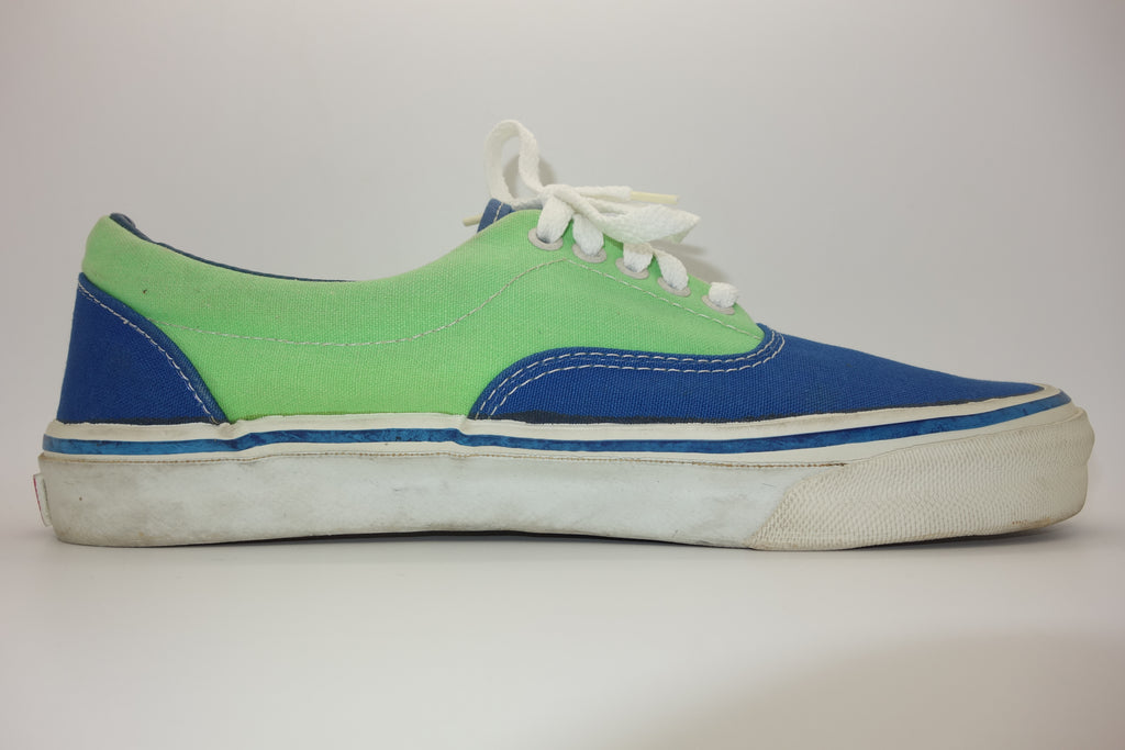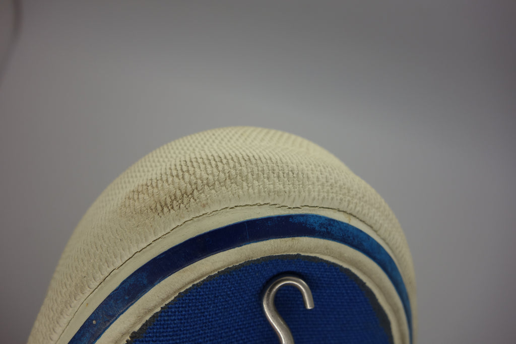superb used(?) condition. possibly only tried on in store.... & the right shoe looks mint! despite some discolouration to the foxing stripe & stress cracking to the left shoe, all rubber remains soft & flexible.
