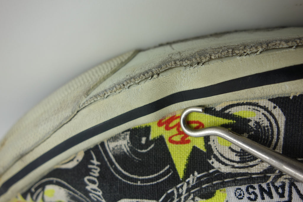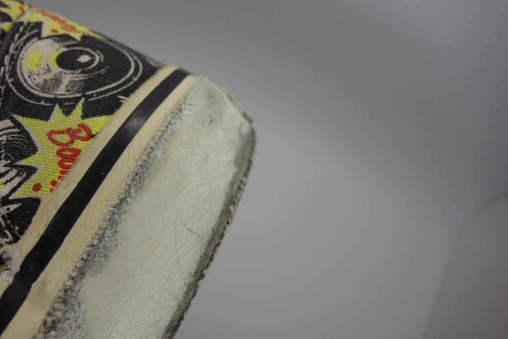 very good used condition. all rubber remains soft & flexible despite wideapread stress cracking & minimal separation from uppers at creases. there was minor exposure to light to the rear lateral sides of both shoes & around to the heel with resulting yellowing & jigsaw cracking. the right shoes shows more dryness than the left.