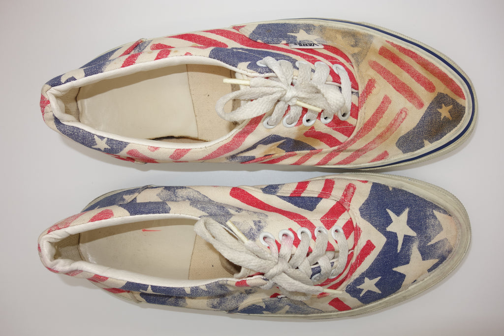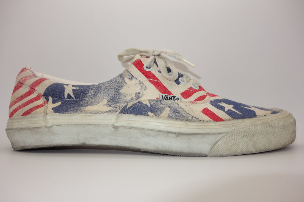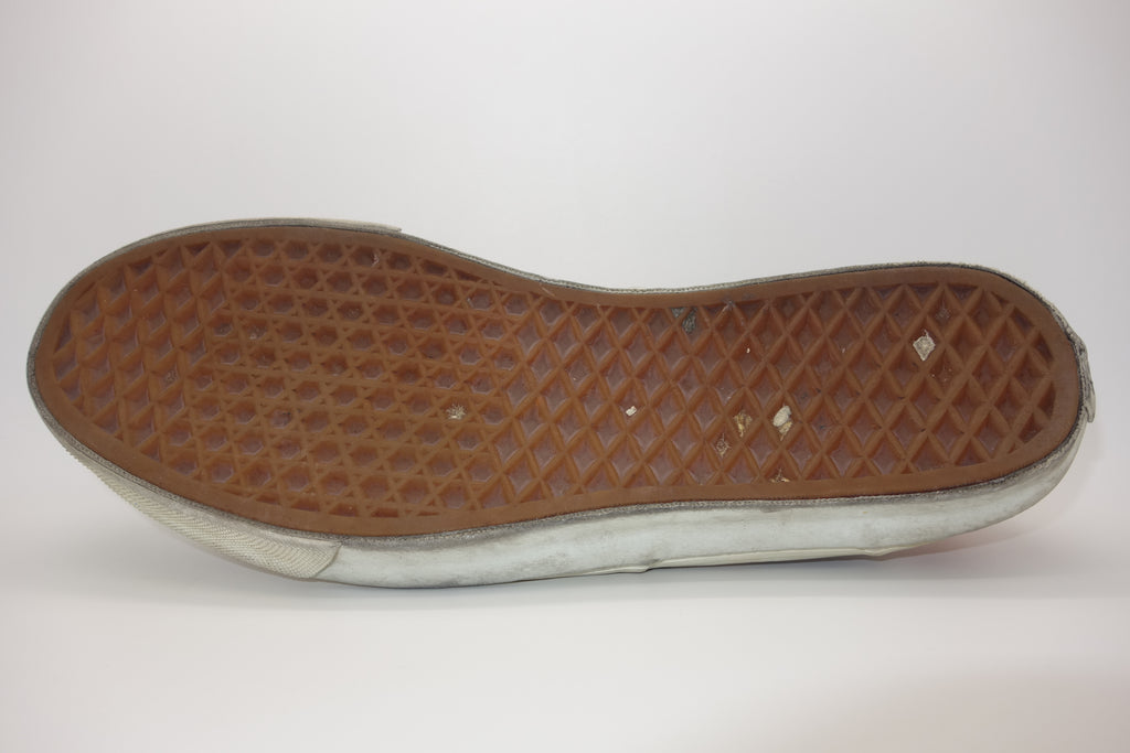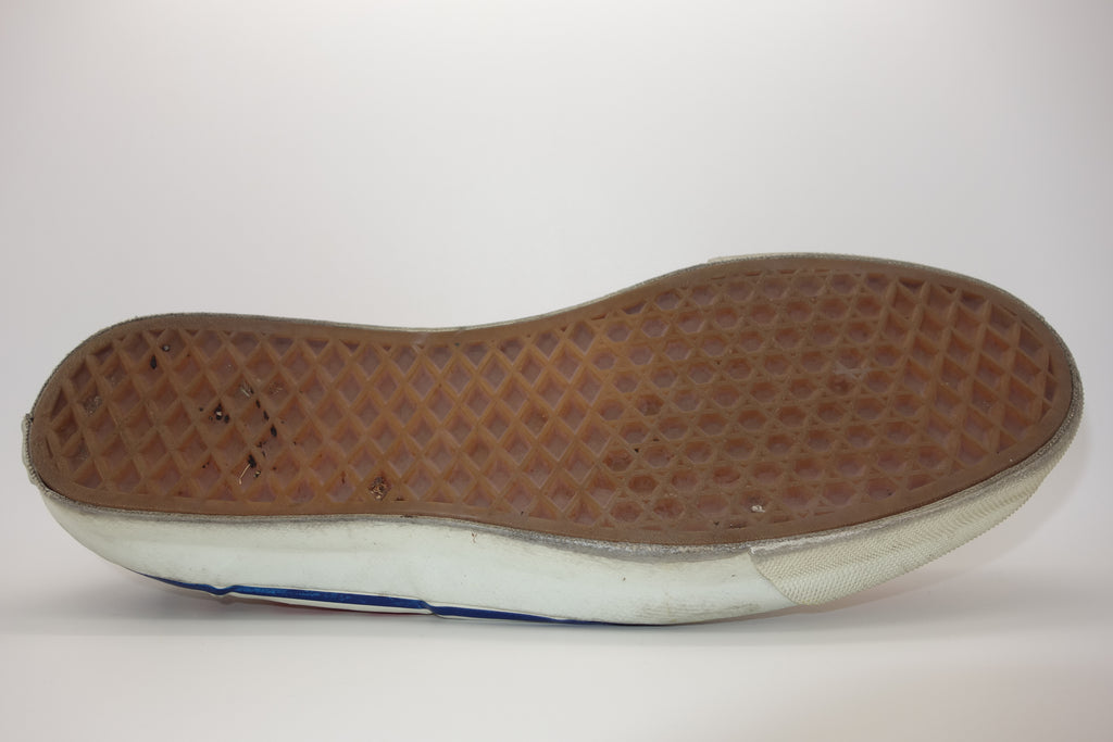 excellent used condition. rubber is flawless. 1 coffee stain to left shoe. contrast foxing stripes, possibly customade like this but more likely switched at birth or somewhere along the line.