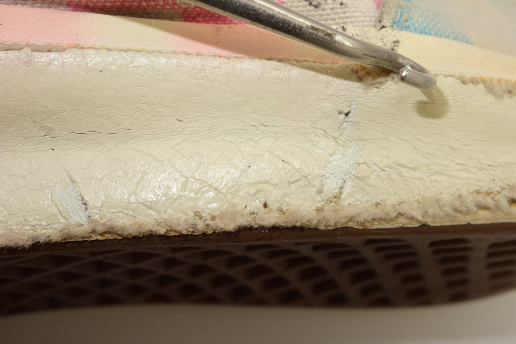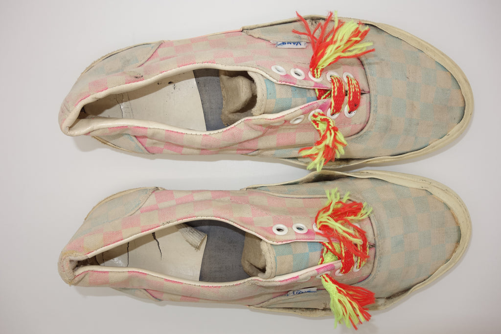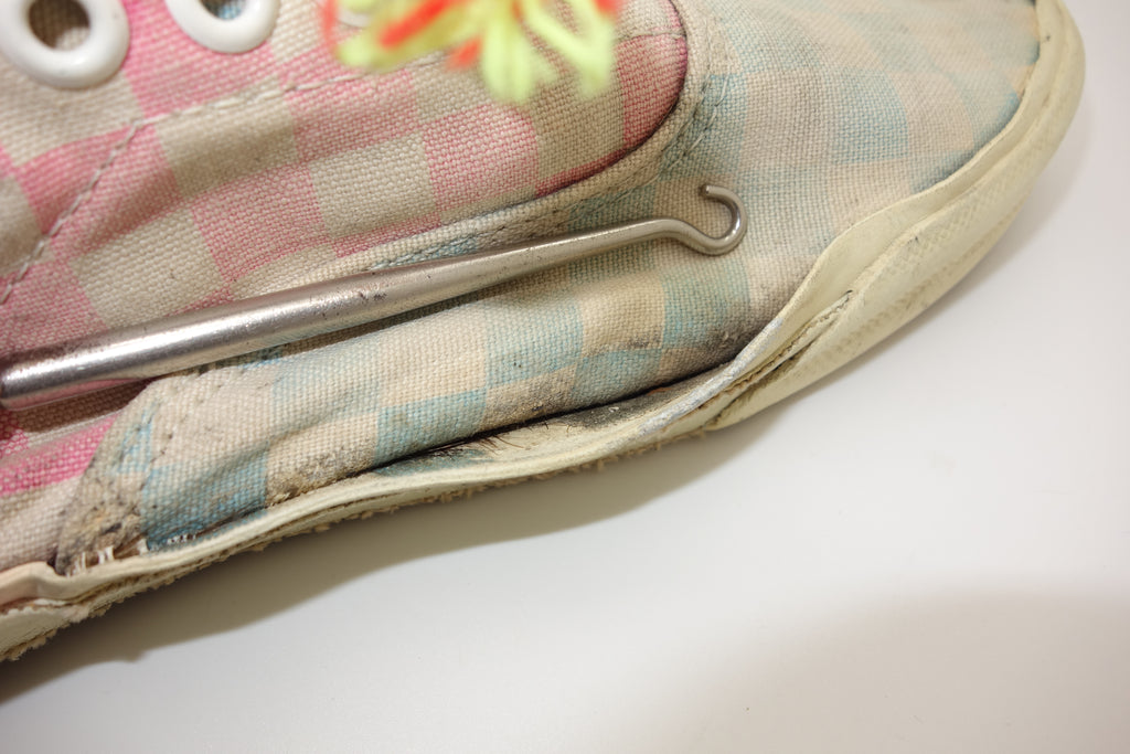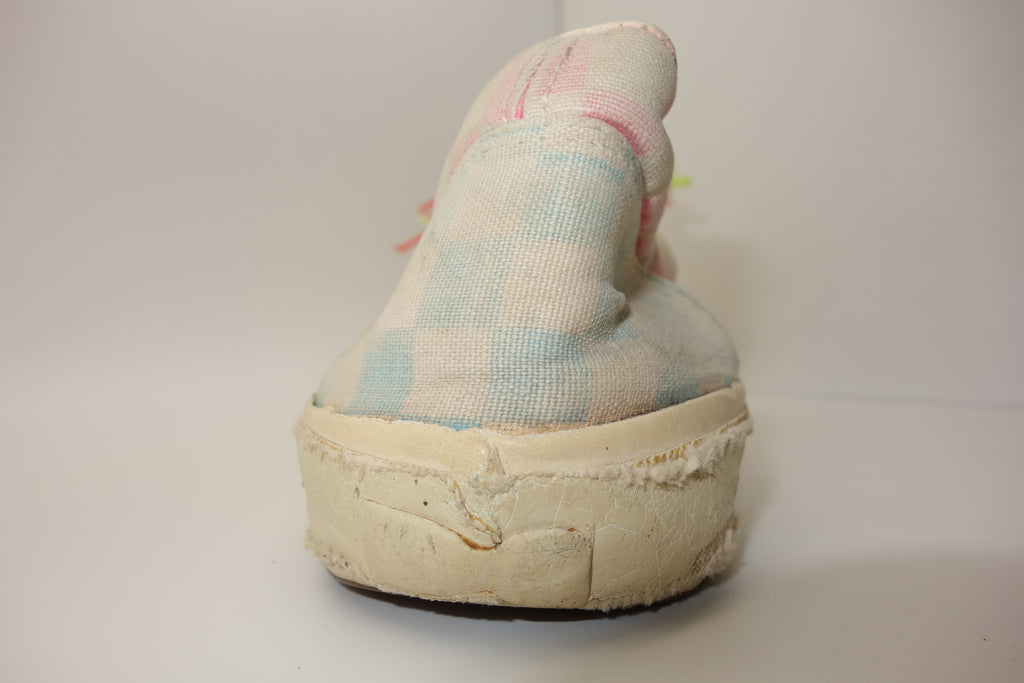 decent used condition. seen significant wear however remain structurally sound internally. several holes at toe creases. all rubber remains soft & flexi despite widespread separation between uppers & stress cracking. some cracking to internal heel counter however remains intact. confident laces are original. probably machine washed which leaves white rubber with abrasions. size not visible but confident of US11 if not US10.5.