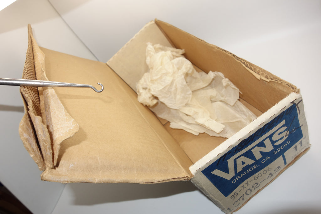 mint unworn with all rubber remaining super soft & flexible. minimal stress cracking from storage only. box however shows water damage & separating cardboard.
