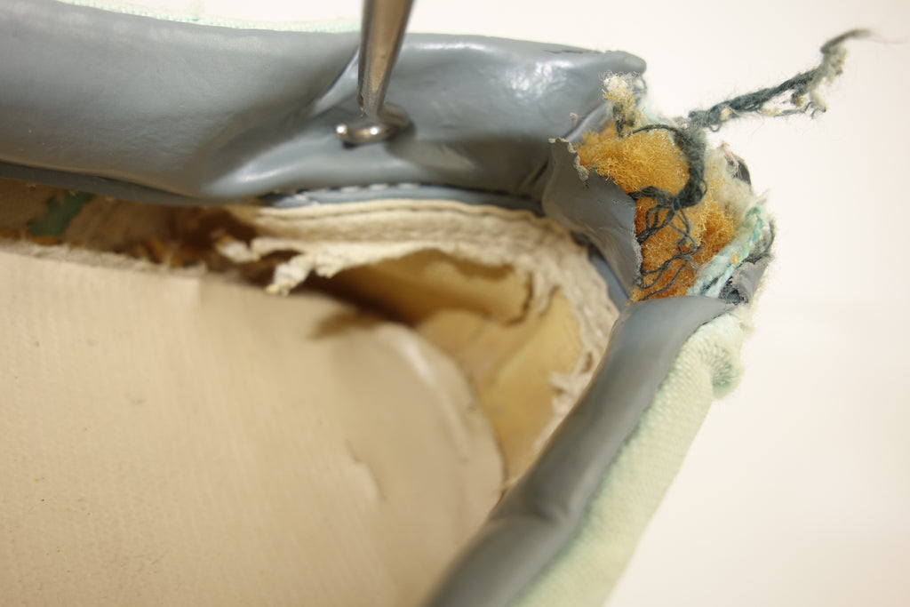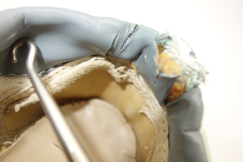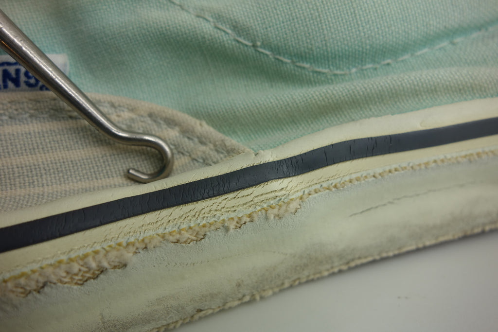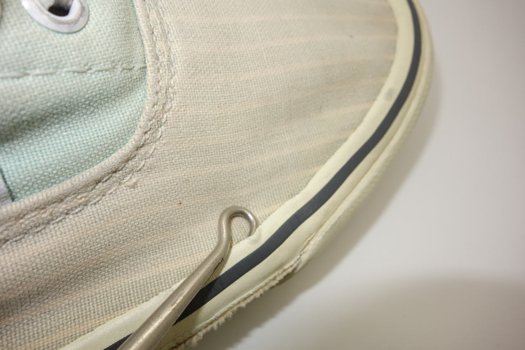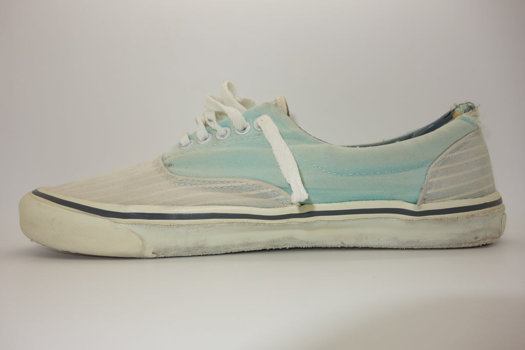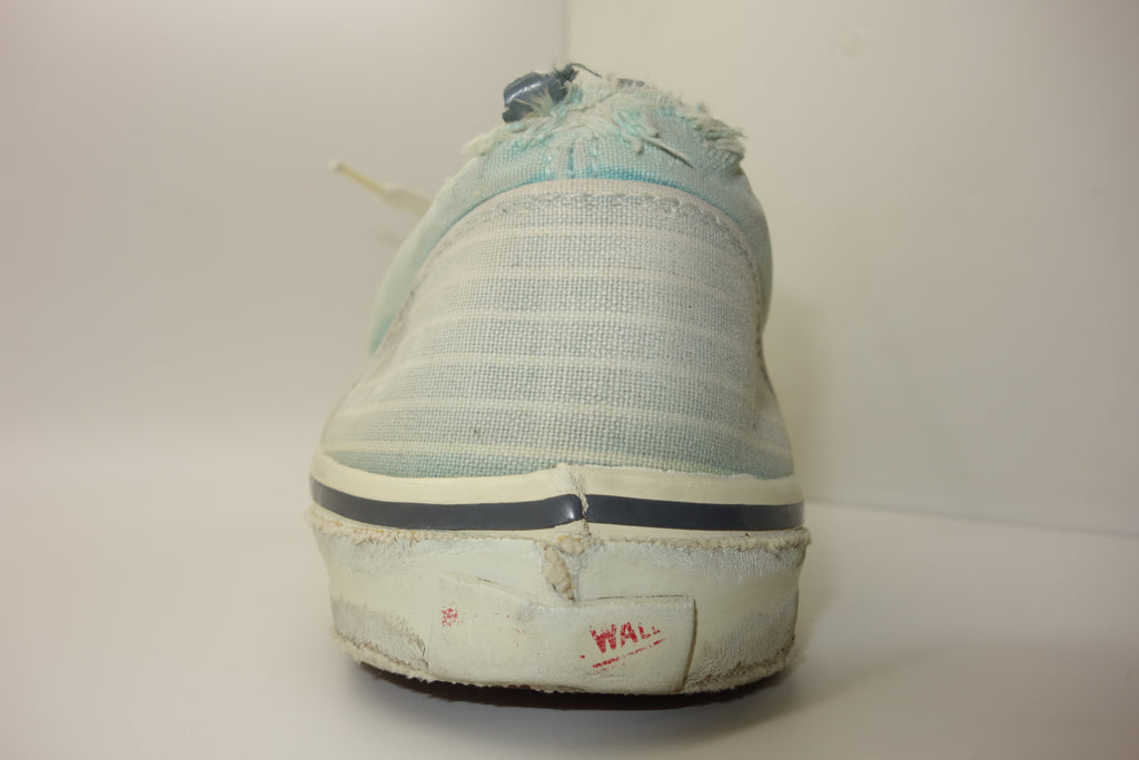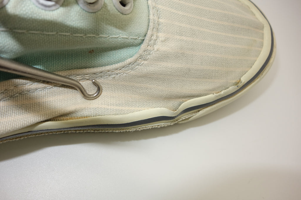 decent used condition. all rubber remains soft & flexible with widespread separation from uppers & stress cracking from crush injury. the internal toe caps are both missing with wear through to canvas. internal heel counters show splits as does the vinyl collar which is pretty pulped, exposing foam fiber fill.