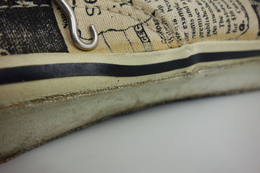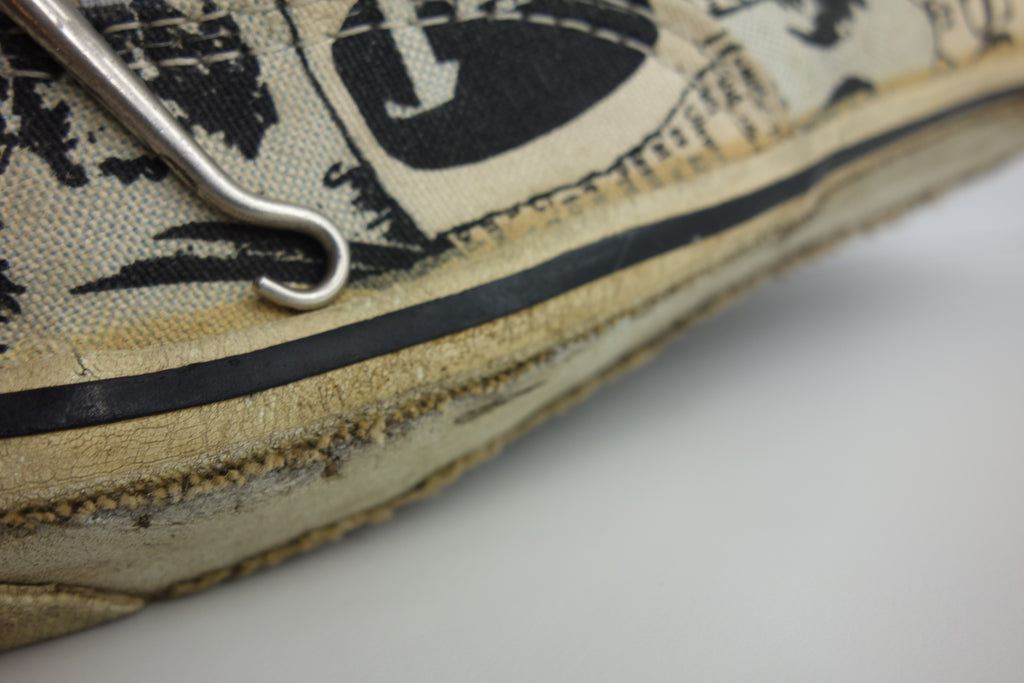very good used condition. the rubber foxing shows minor dryness & subtle crusting with separation between uppers at toe creases & canvas seams. despite this the rubber remains soft & flexible. 1 small split to the inner heel counter. plenty life left!