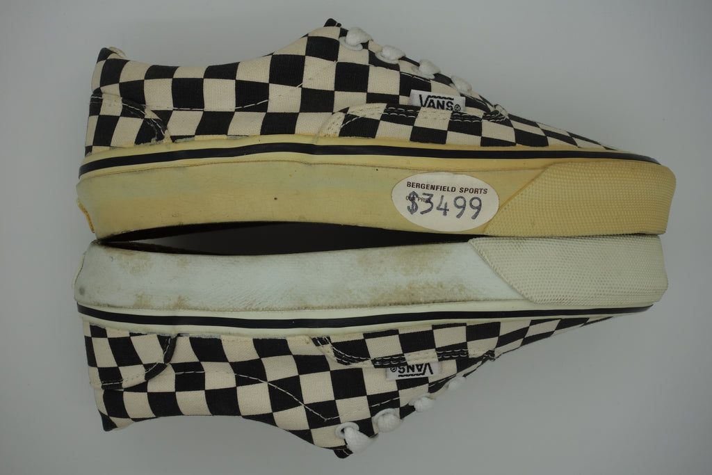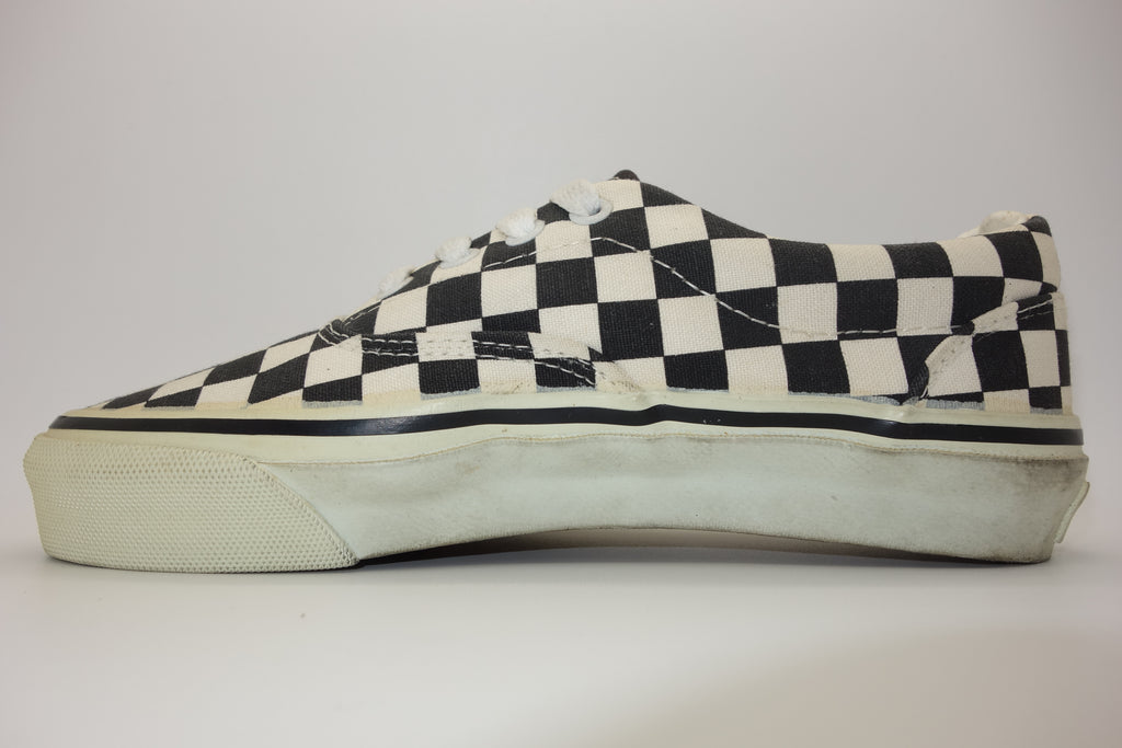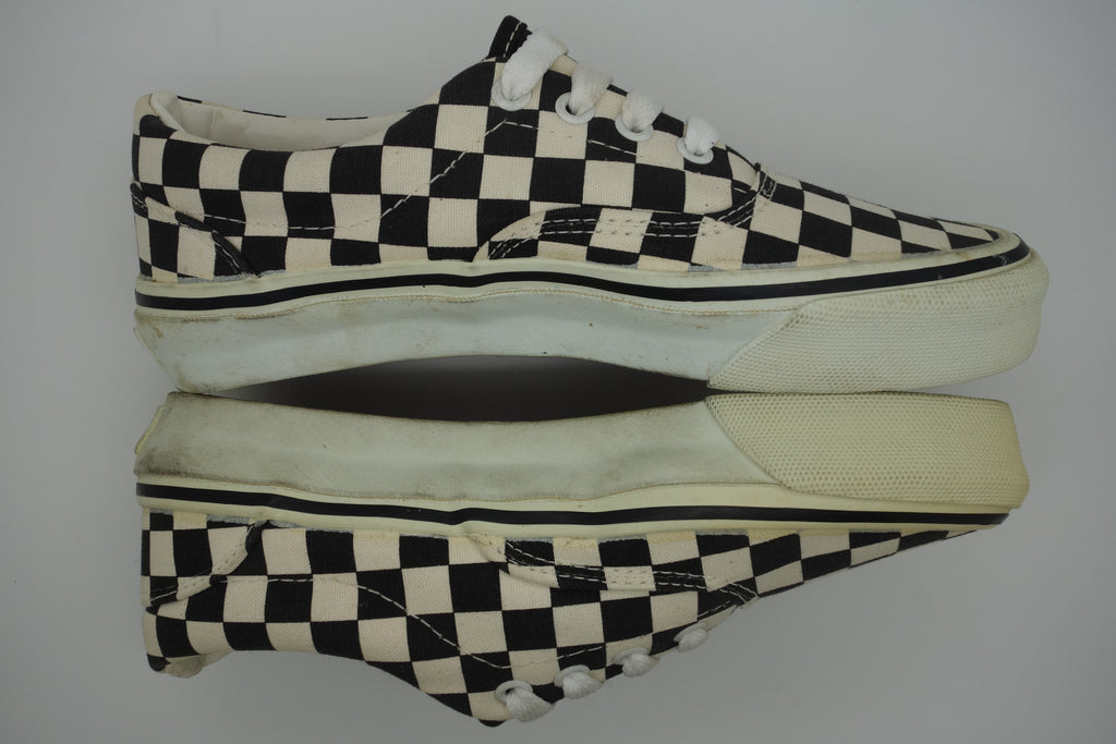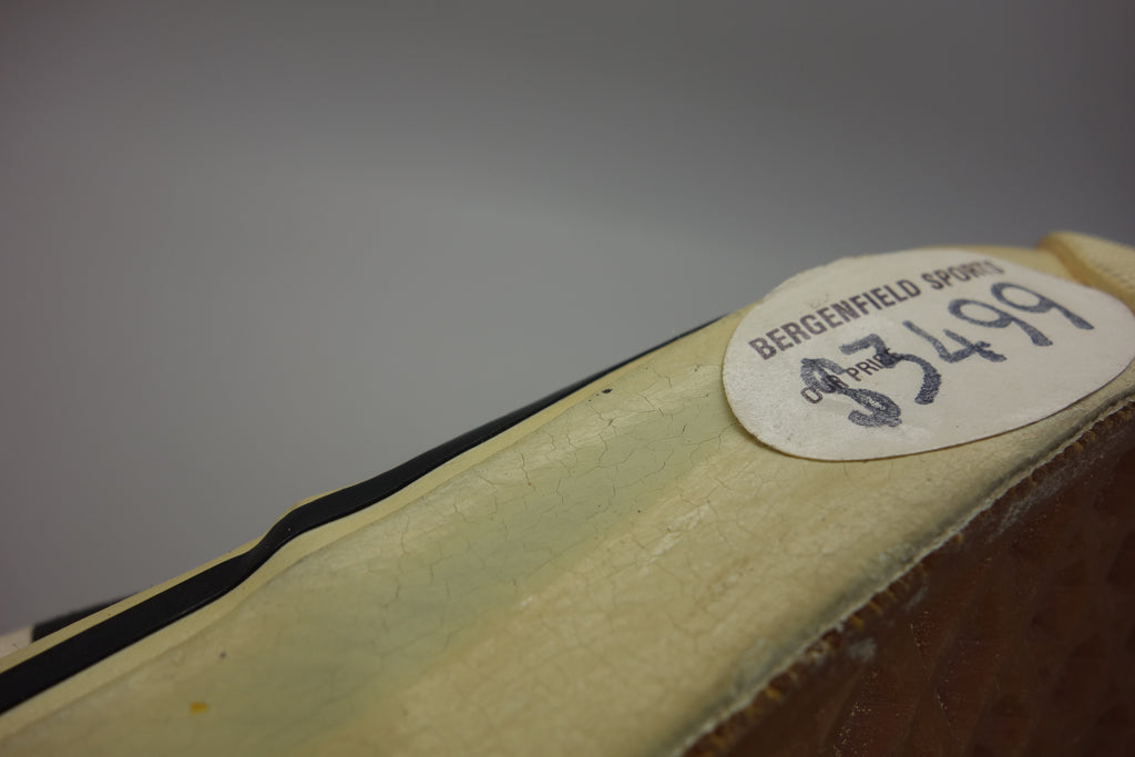 unworn however the right shoe saw significant use as floor display with resulting lateral rubber discolouration. rubber remains soft & flexible albeit dry with micro jigsaw cracking & stress lines. from experience these will hold up to normal wear. the price sticker on the foxing will reveal white circle underneath