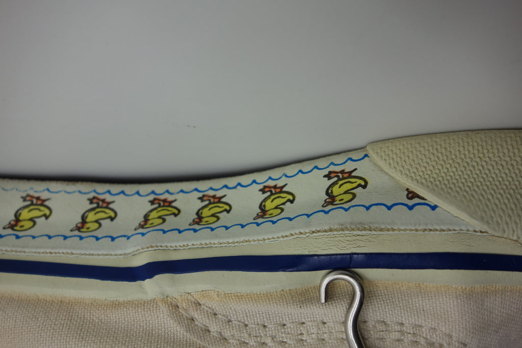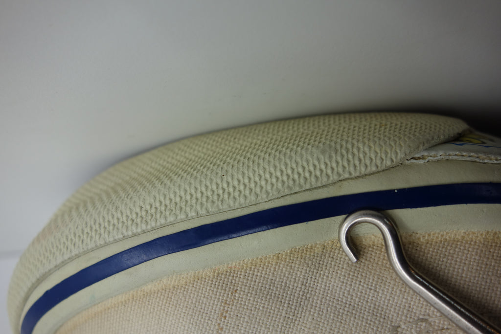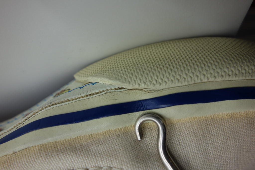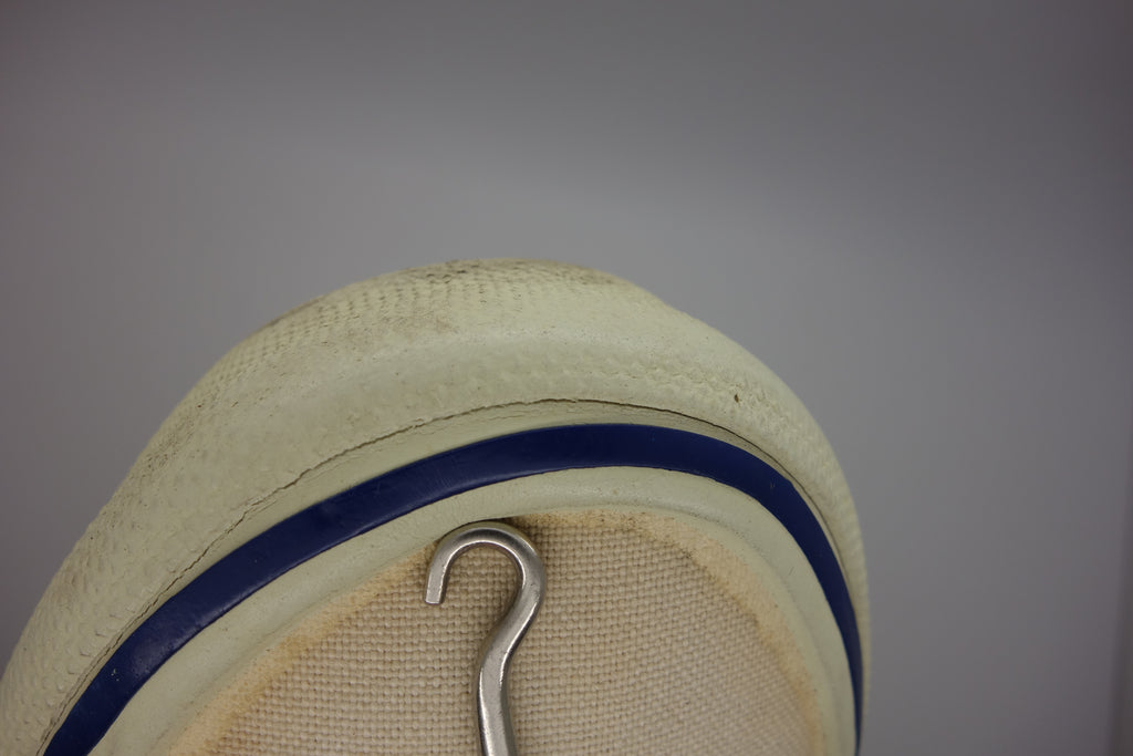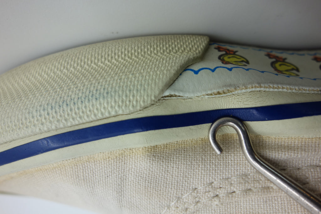 good used condition. all rubber remains soft & flexible despite micro stress cracking from crush injury. possibly machine washed with resulting sidewall erosion. size not visible but fairly confident of US4, if not smaller. laces not original.