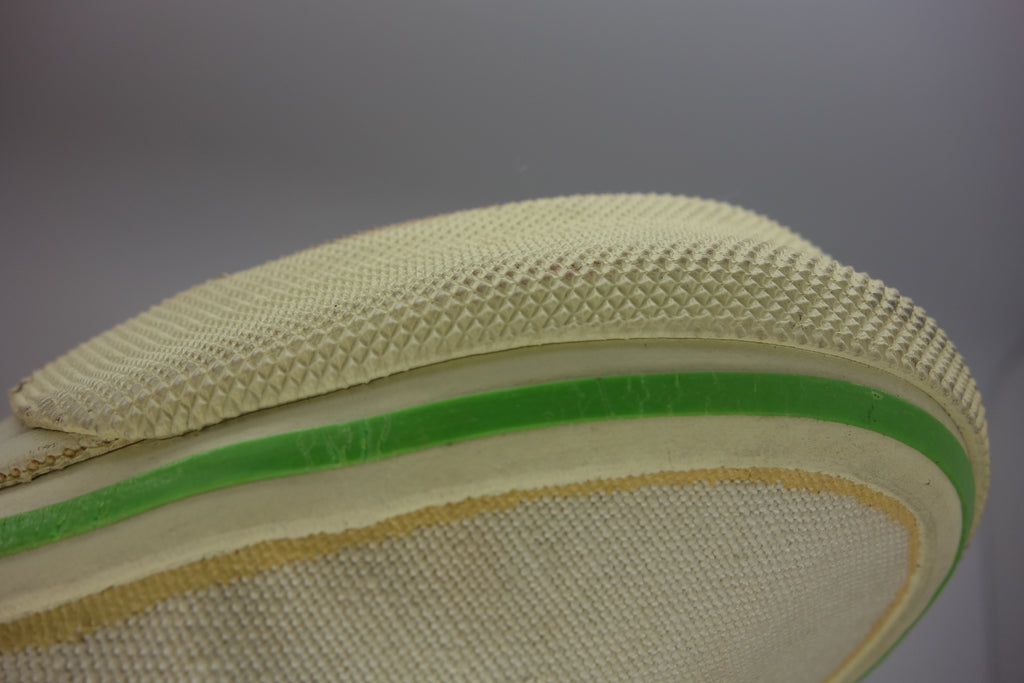 only worn a handful of times. they did however see exposure to the elements with some fading uppers to the right shoe & rubber discolouration. despite this & dryness to the rubber, it does however remain soft & flexible. possible loss of the foxing stripe only may occur but from experience these should hold up to normal wear. wear at own risk!