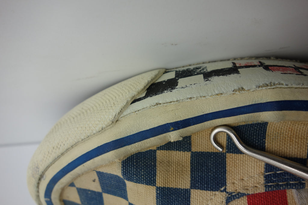 good used condition. all rubber remains soft & flexible despite some dryness. minimal separation from uppers at toe creases. widespread stress cracking from crush injury. look to have been machine washed. size not visible but confident US6.