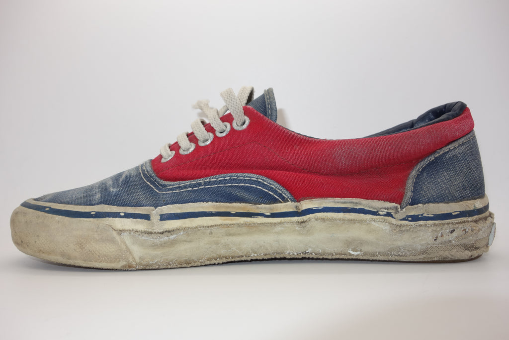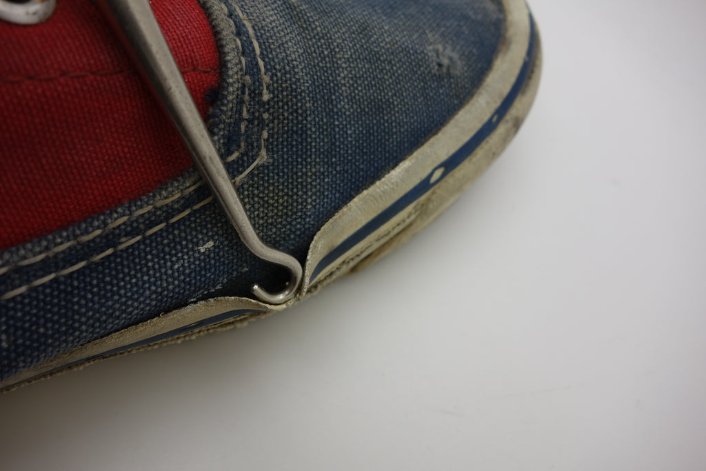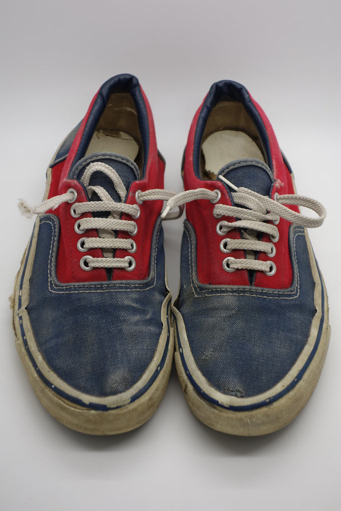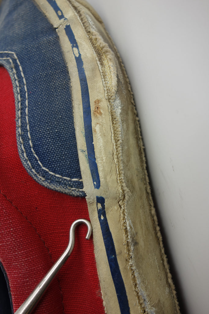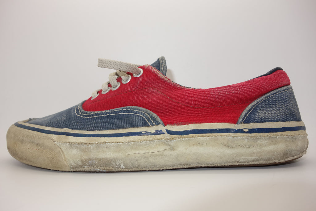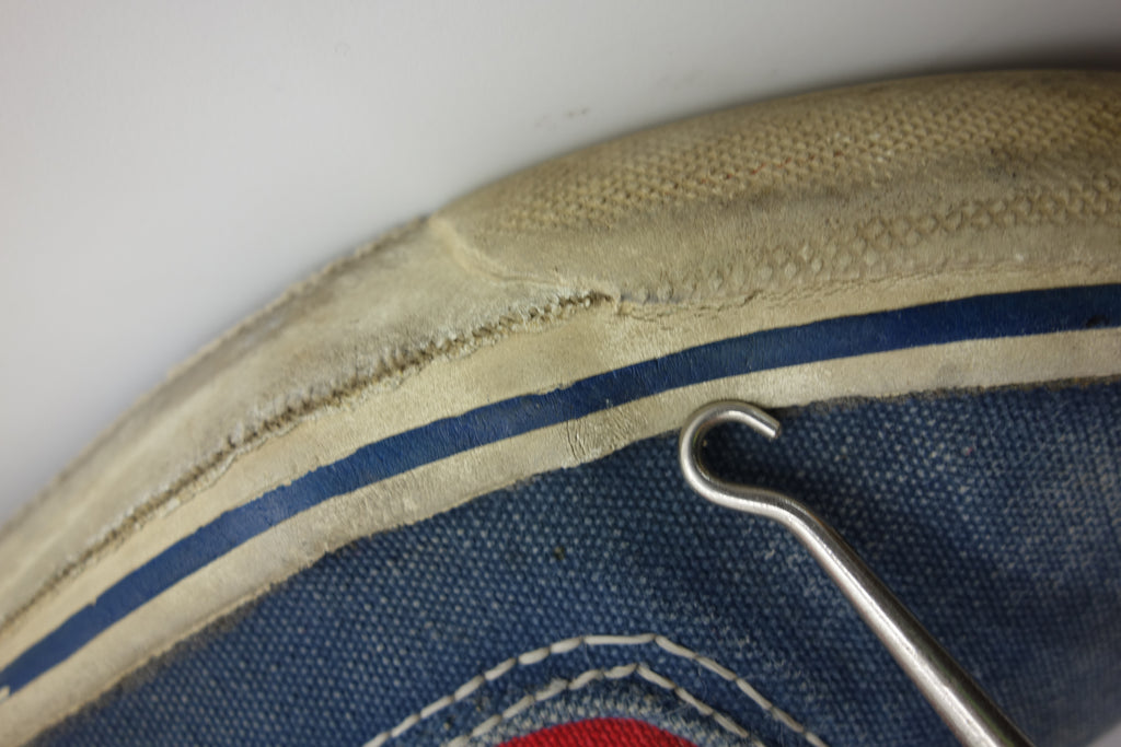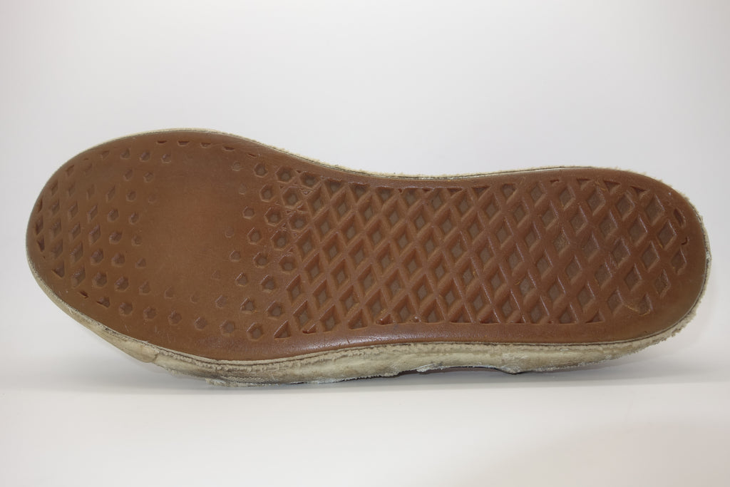 good used condition. well-loved yes but rubber remains soft & flexible (but for small areas at heels) despite being somewhat dry & crusty. structurally however they are sound with no wear to insole or internal heel counter. the start of 1 small hole at left big toe, but denim-like uppers will maintain. from experience these will hold up to normal wear. laces not original. size not visible but confident of US7.5 if not US8.